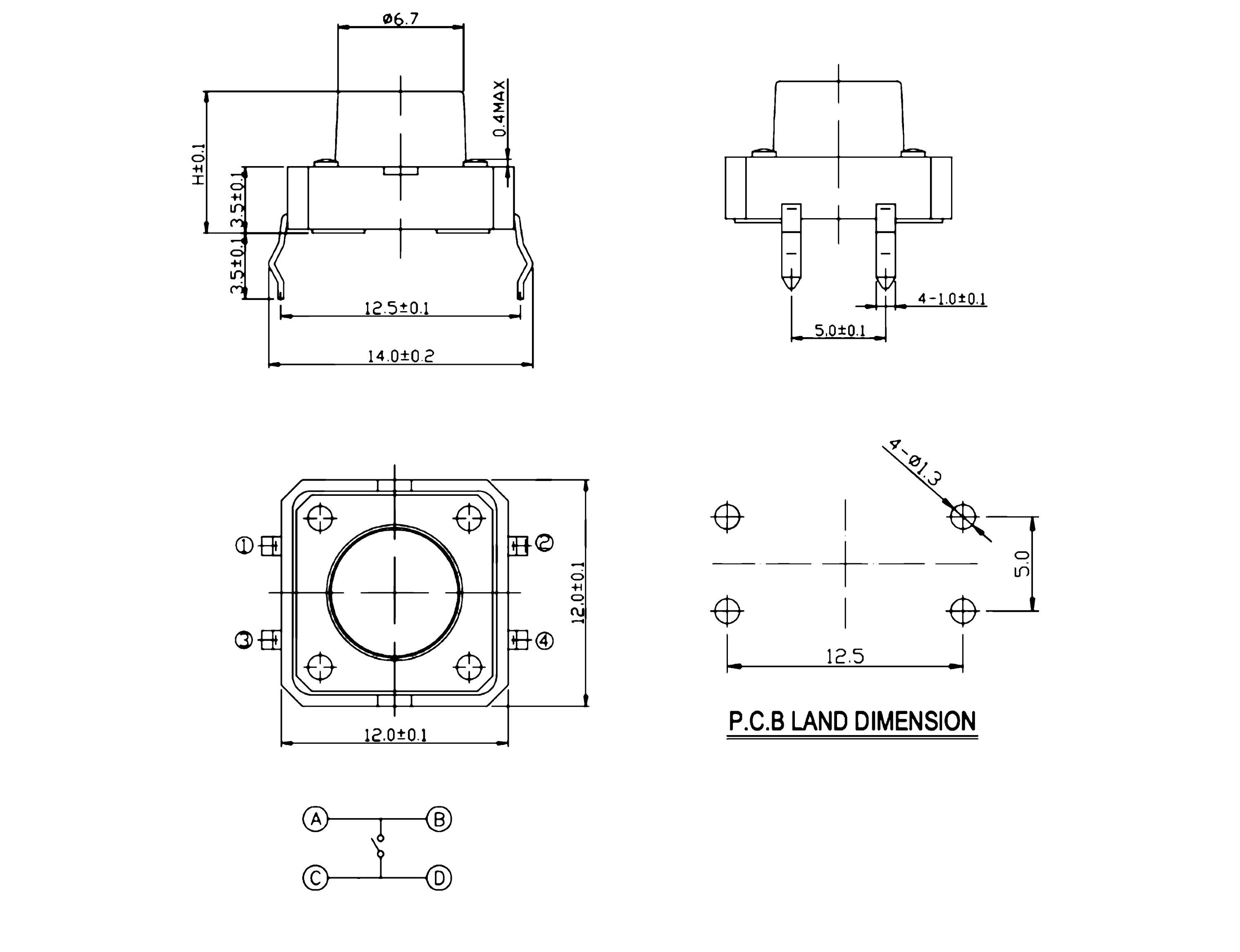 THT Mikrotaster 12x12x4,5 mm Mini Taster Printschalter Drucktaster 12x12mm x 4.5