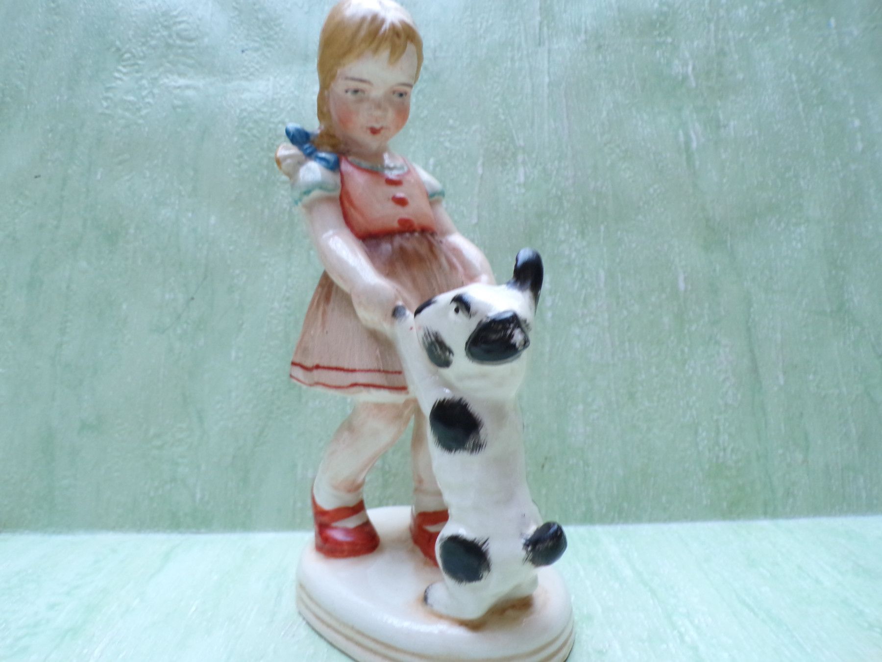 Thüringen nr 39572 Figur Mädchen Kind tanzt mit Hund Tier ca 17,5cm