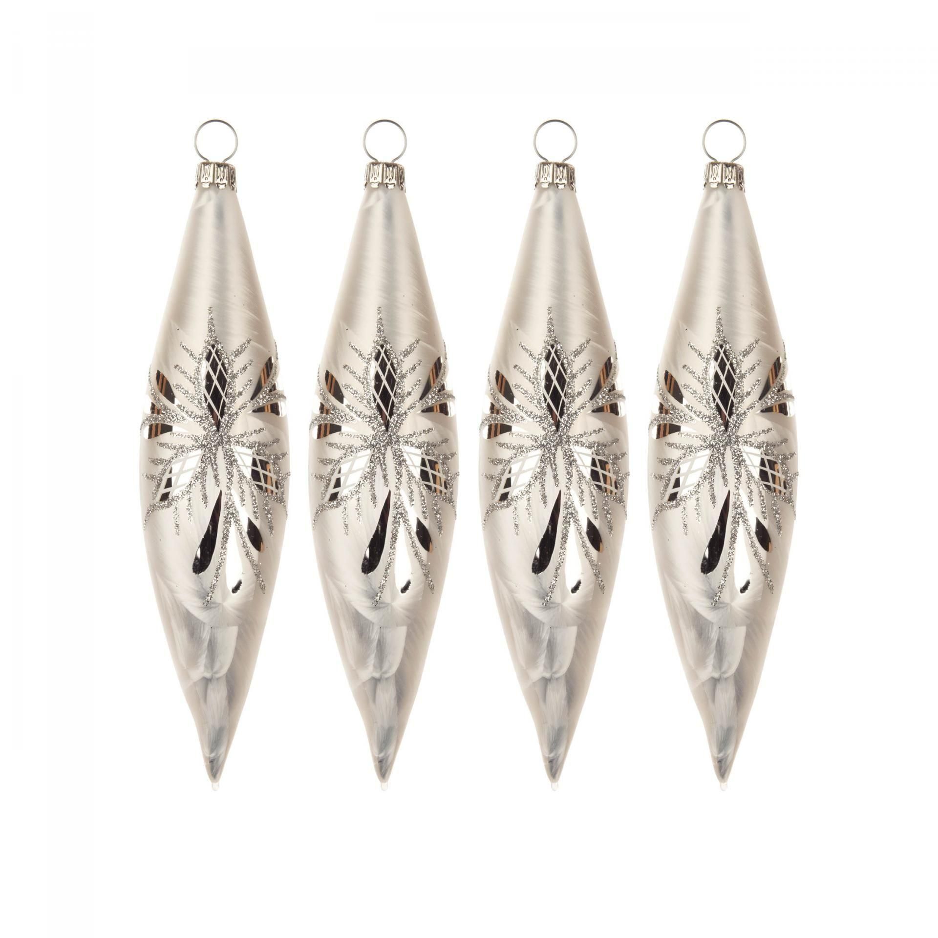 Thüringer Christbaumschmuck Olive eisweiß Waffelmuster silber 4 BxHxT 3x14x3cm NE
