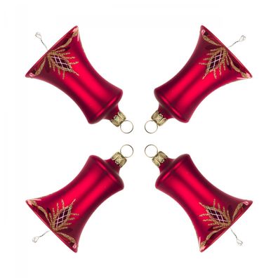 • Thüringer Christbaumschmuck Glocke rot-matt Waffelmuster (4) Höhe 8cm NEU Baumbeh