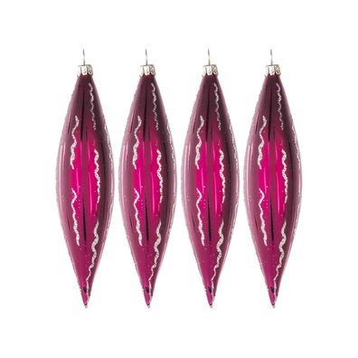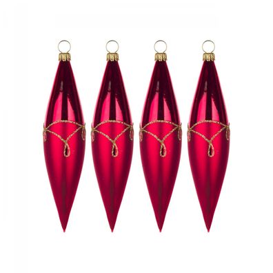 • Thüringer Christbaumschmuck Olive rot-matt Tropfenmuster (4) BxHxT 3x14x3cm NEU B