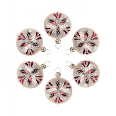 • Thüringer Christbaumschmuck Kugel eisweiß Waffelmuster rot (6) BxHxT 5x5x5cm NEU