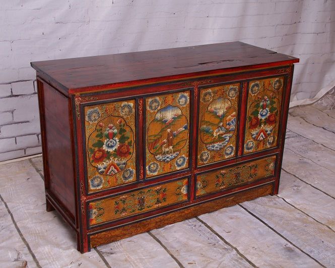 Tibet breite Kommode in traditioneller Bemalung. Luxury Park