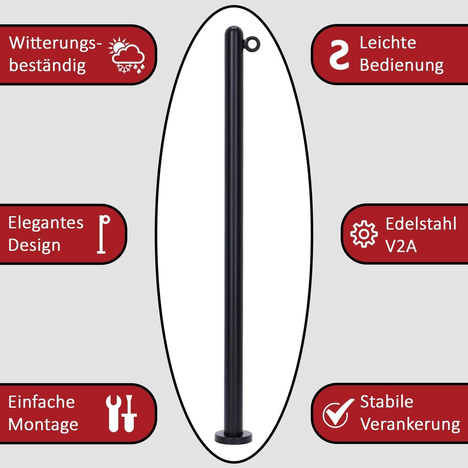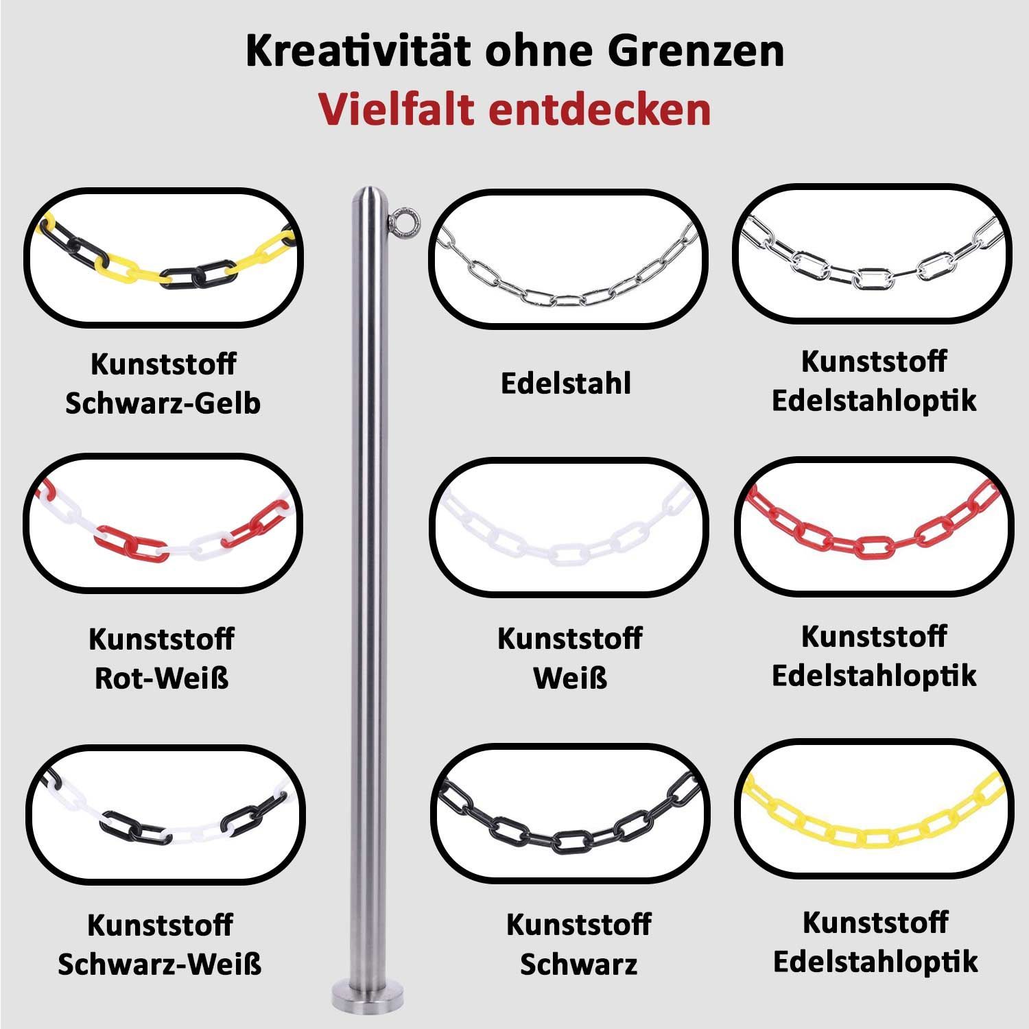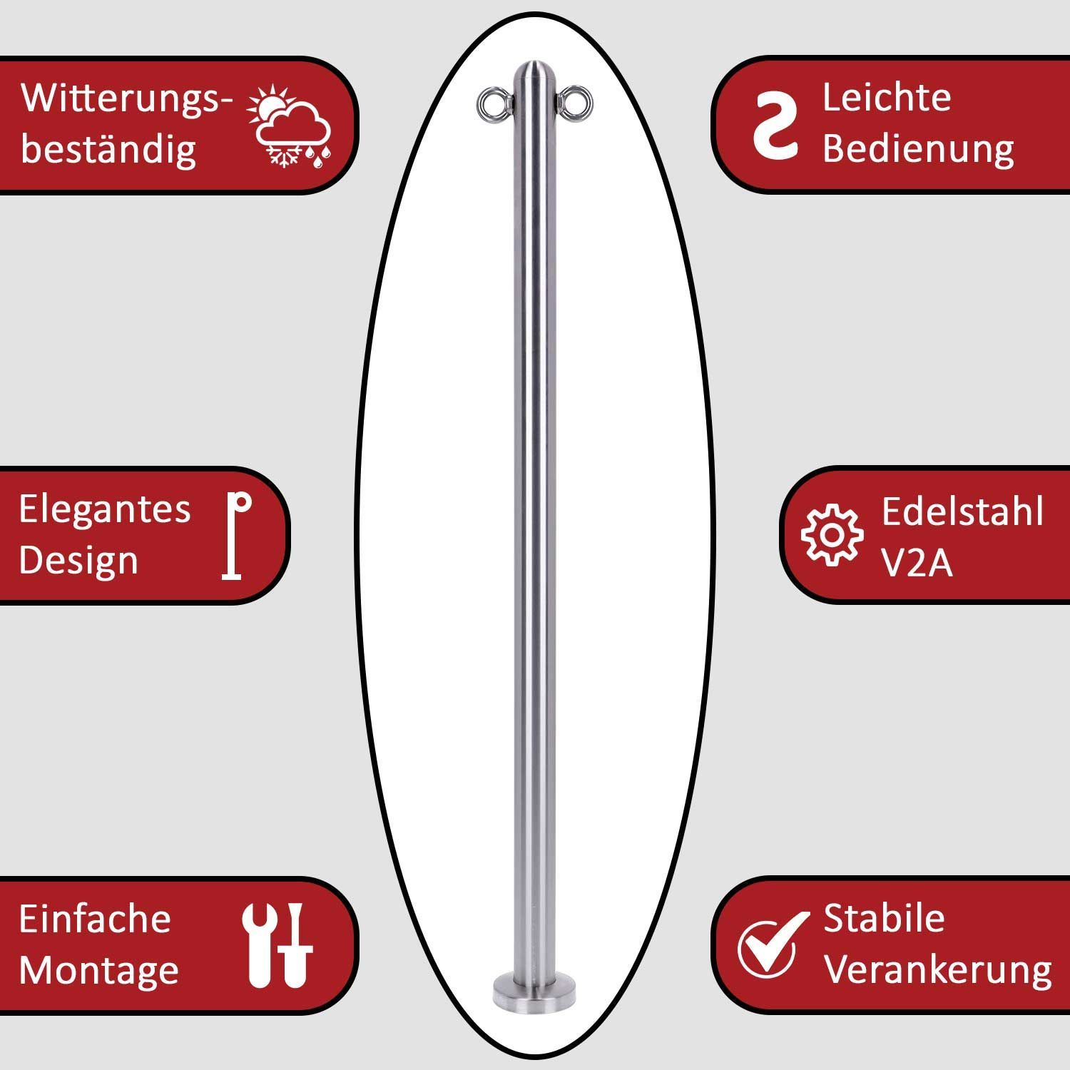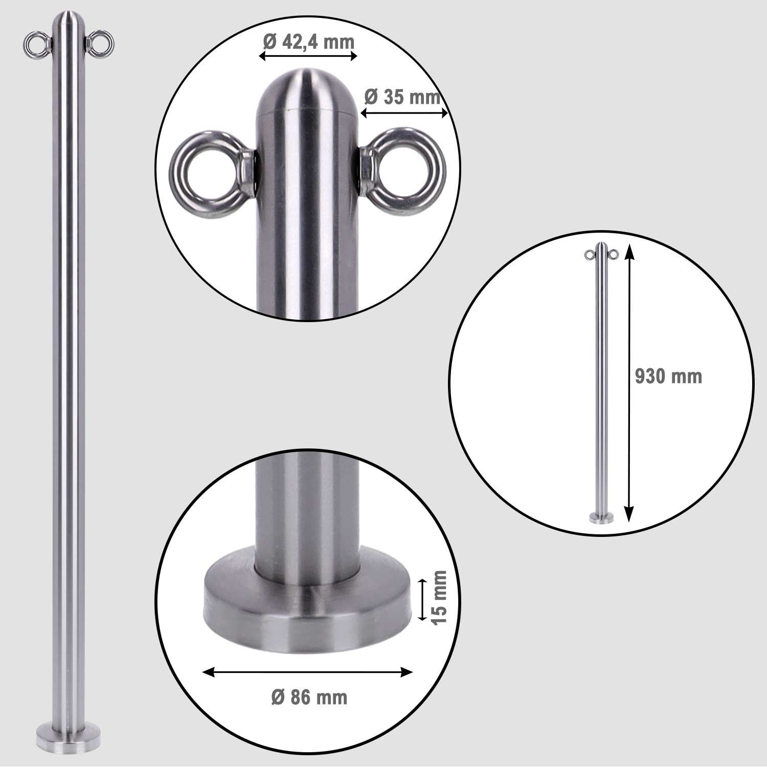 TIBU Absperrpfosten Edelstahl Ø 42,4mm Kettenpfosten Sperrpfosten Abgrenzungspfost