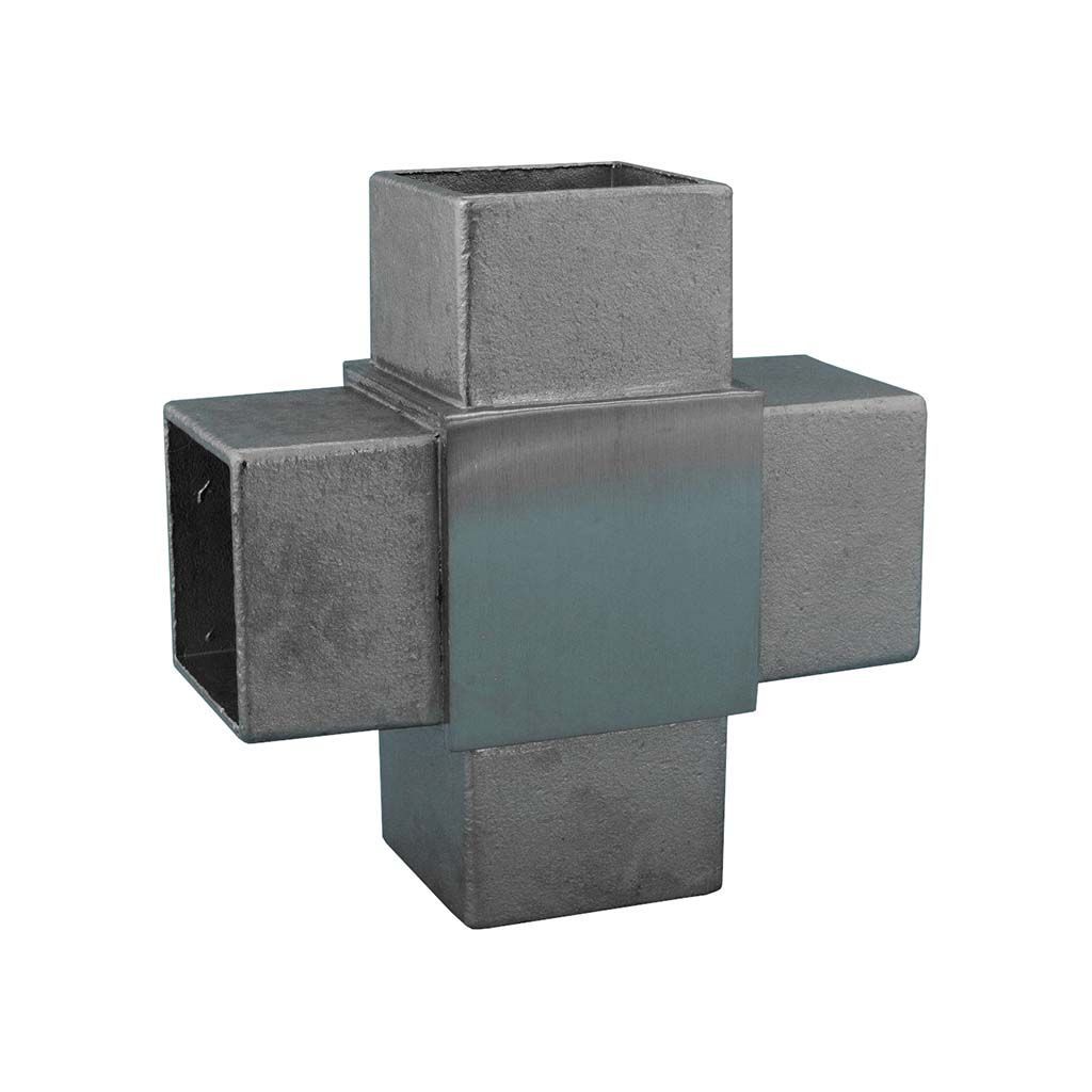 TIBU Edelstahl 4-Wege V2A Kreuzverbinder Quadratrohr Handlauf Geländer Treppe Balkon