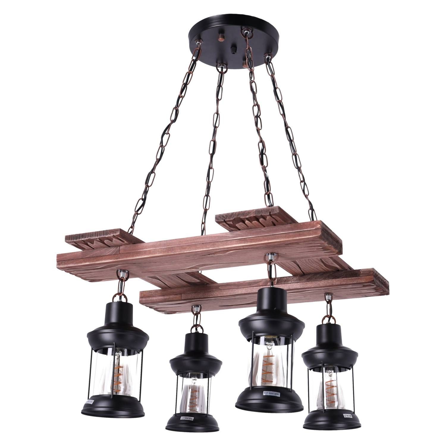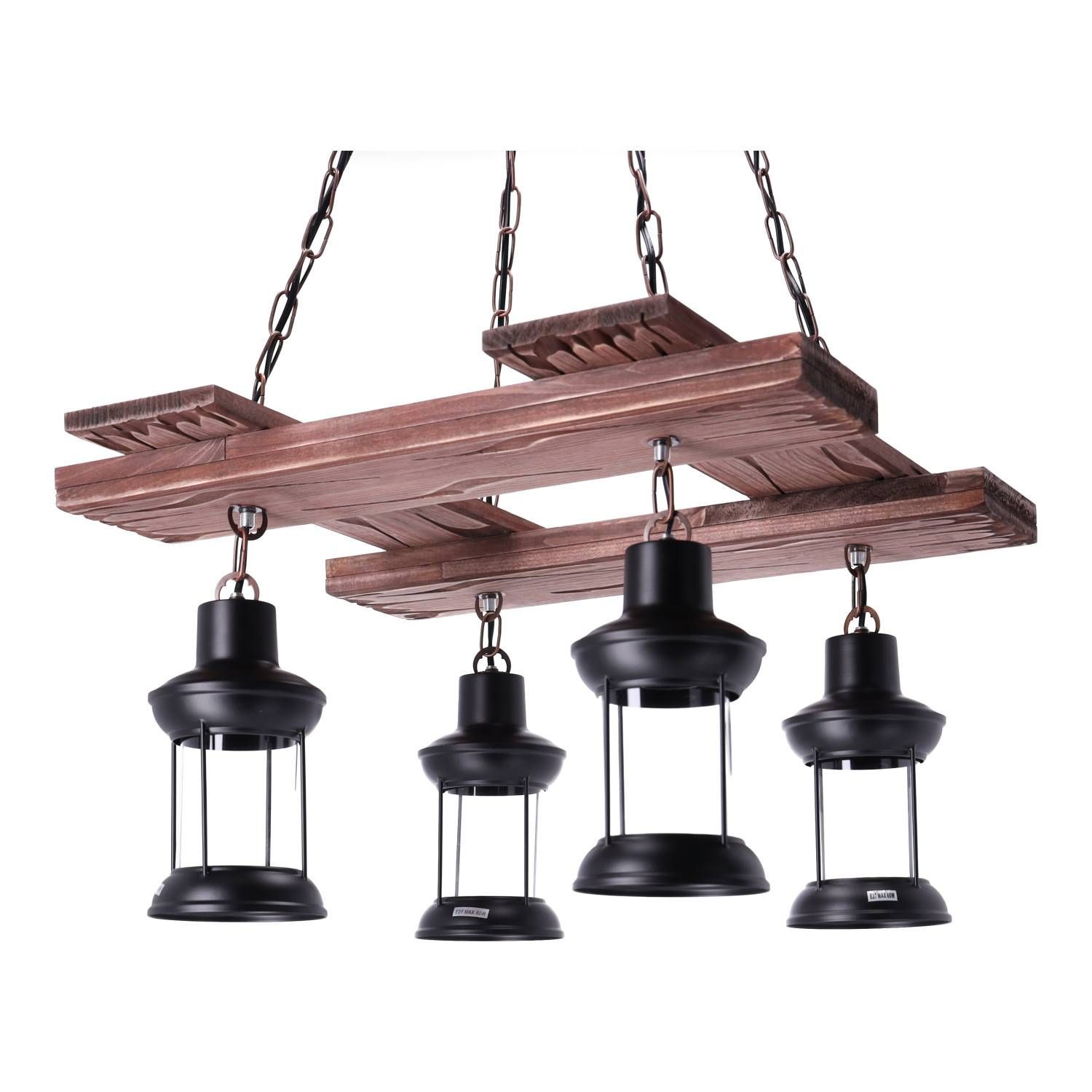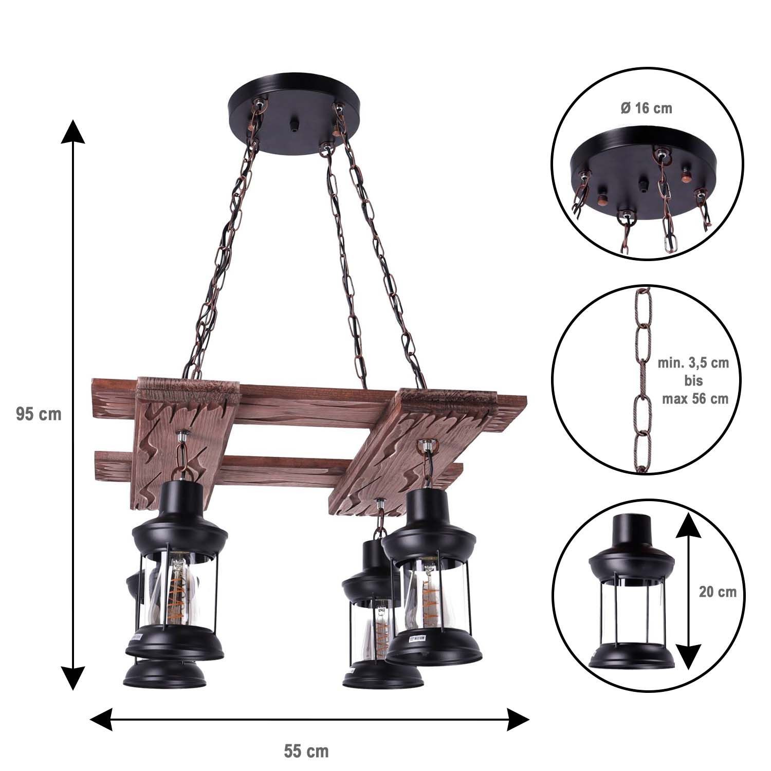 TIBU Hängelampe Holz Vintage Pendelleuchte Pendellampe Modell Hoch Kreuz 4 Lichter