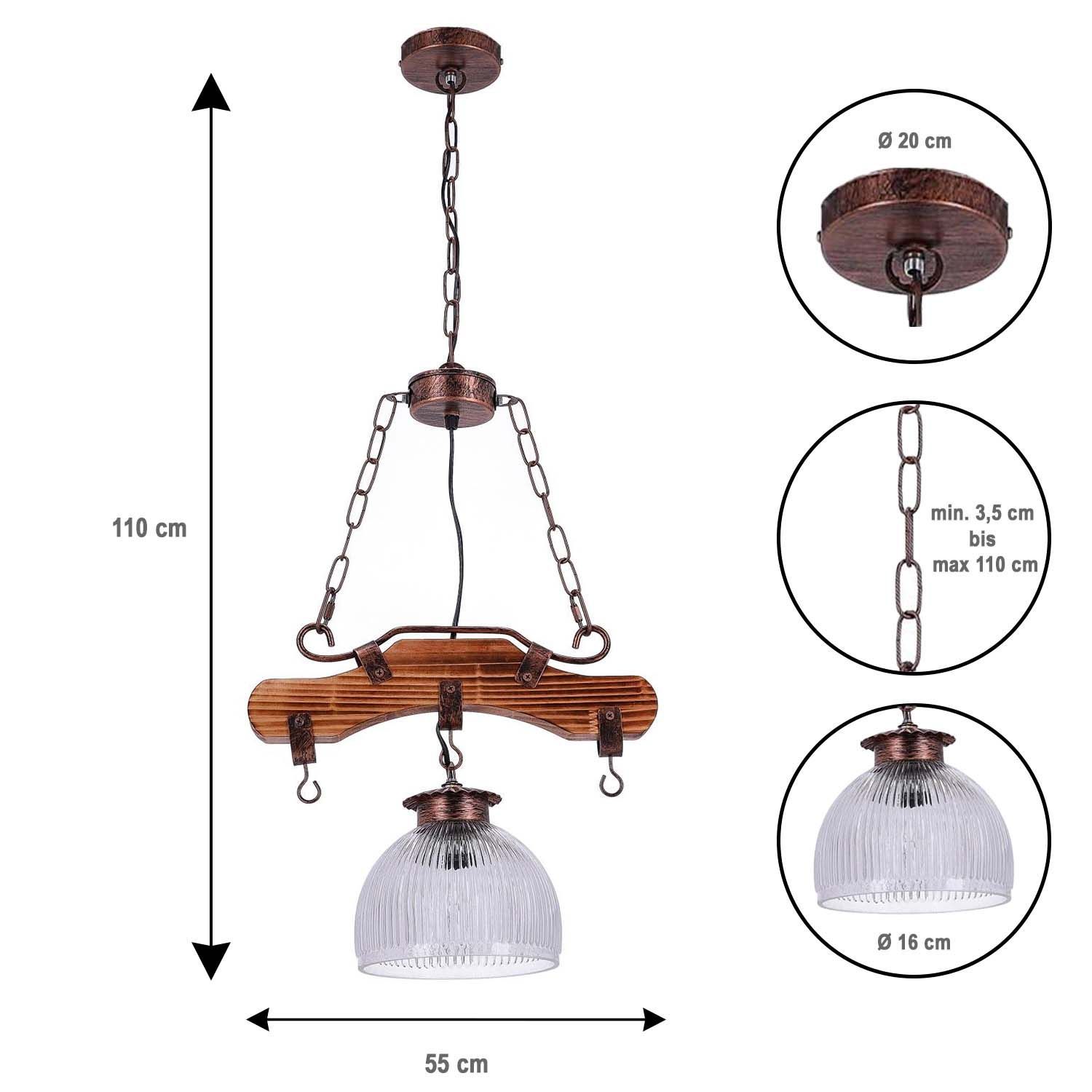 TIBU Hängelampe Holz Vintage Pendelleuchte Pendellampe Modell Bügel 1 Lichter