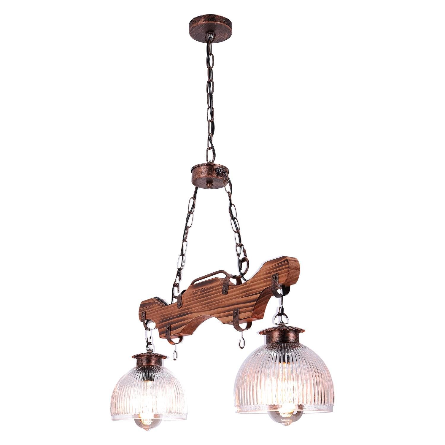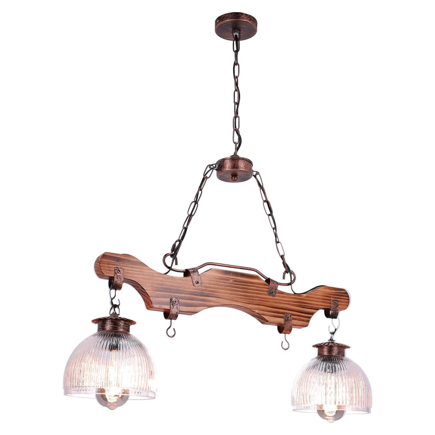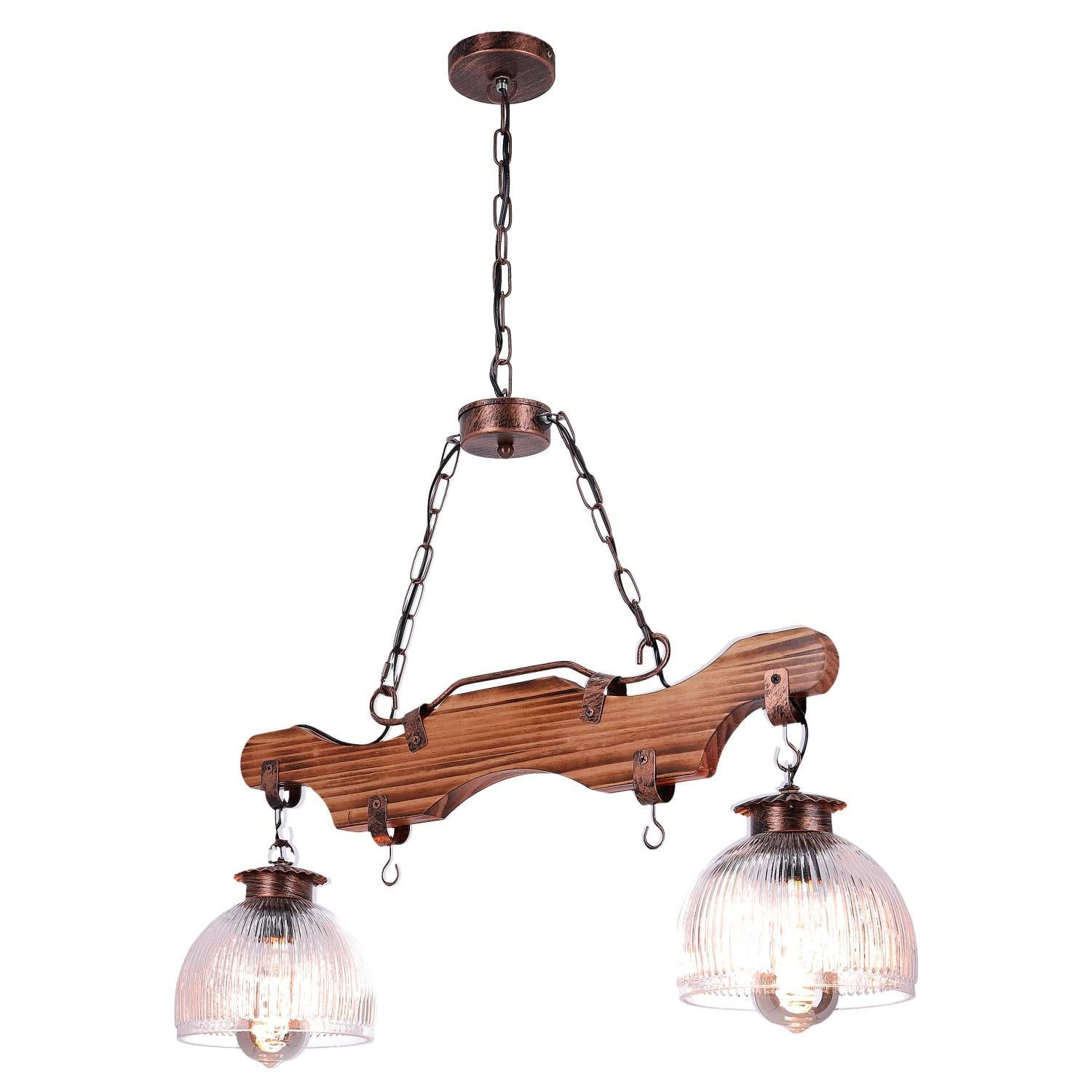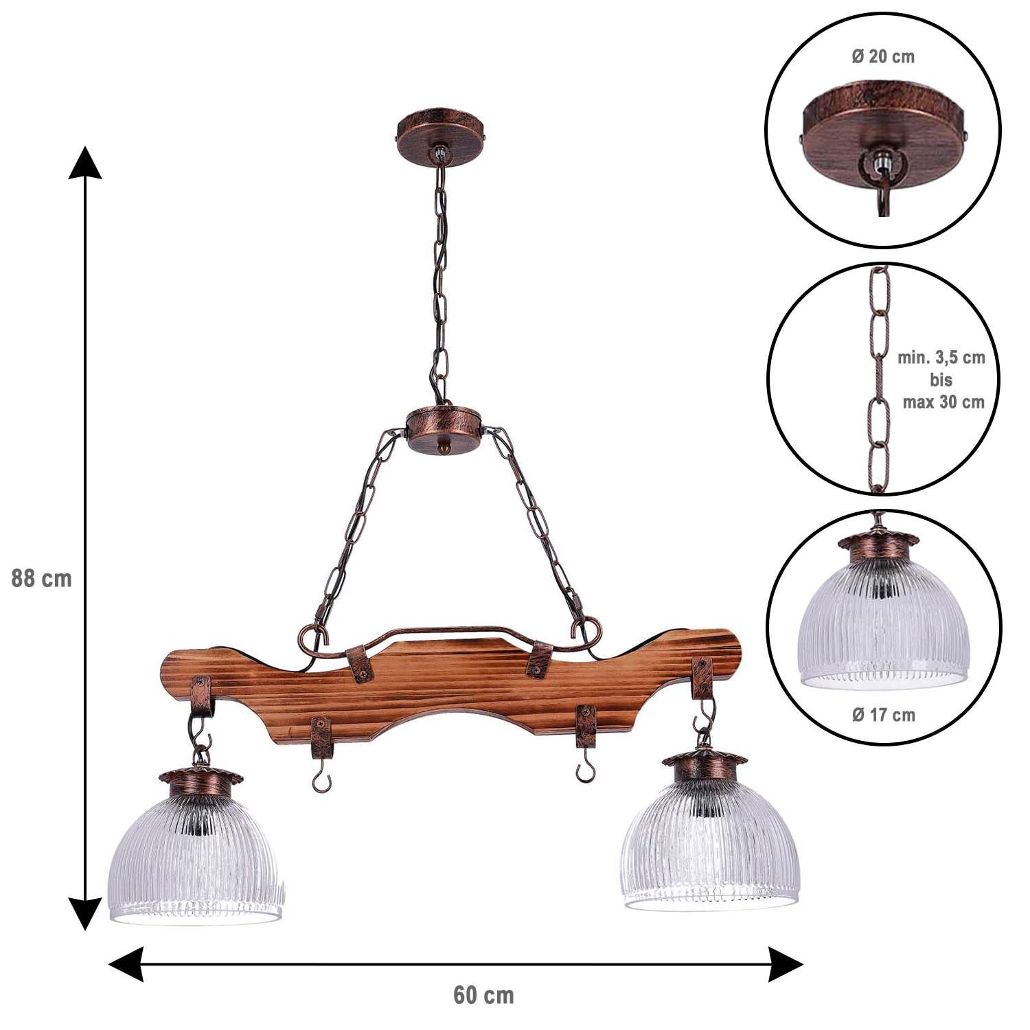 TIBU Hängelampe Holz Vintage Pendelleuchte Pendellampe Modell Bügel 2 Lichter