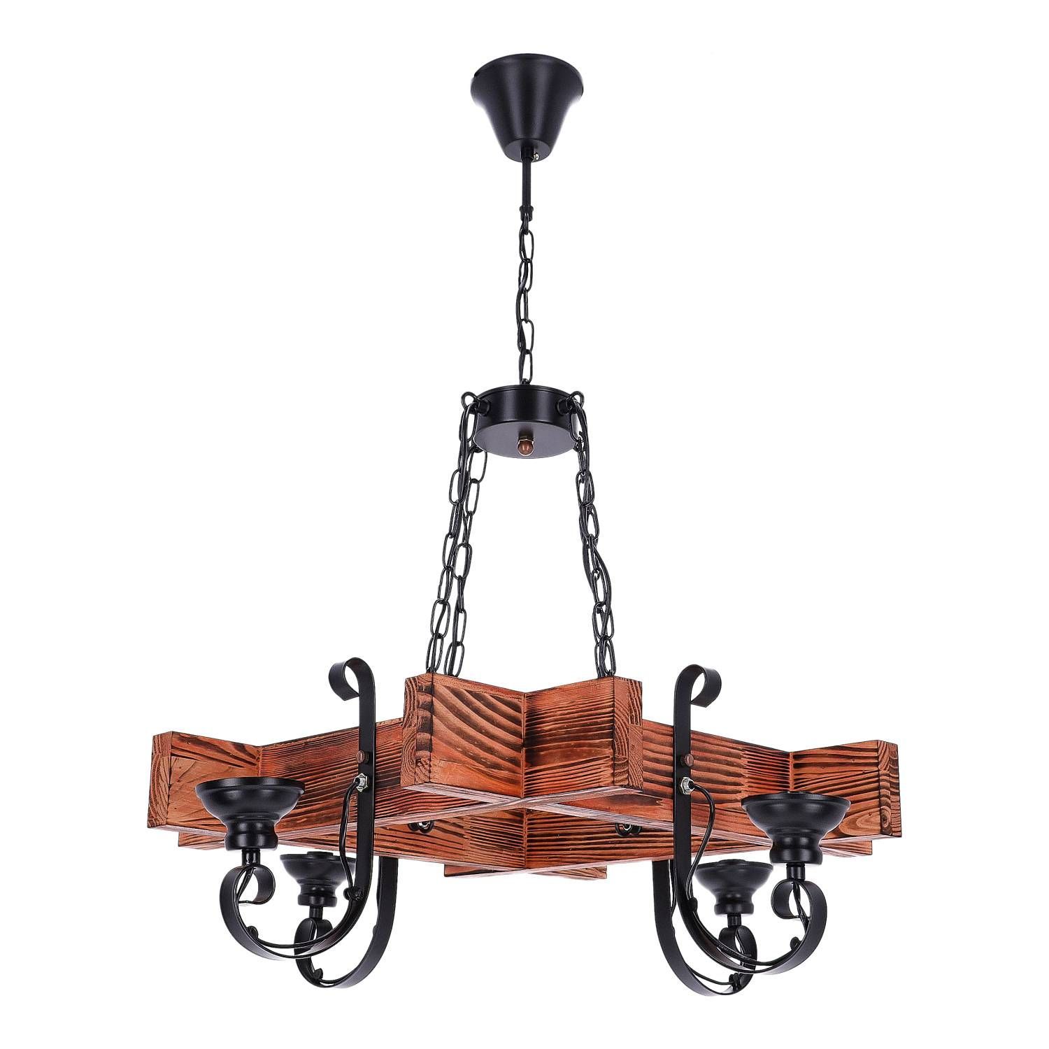 TIBU Hängelampe Holz Vintage Pendelleuchte Pendellampe Modell Balken 6 Lichter