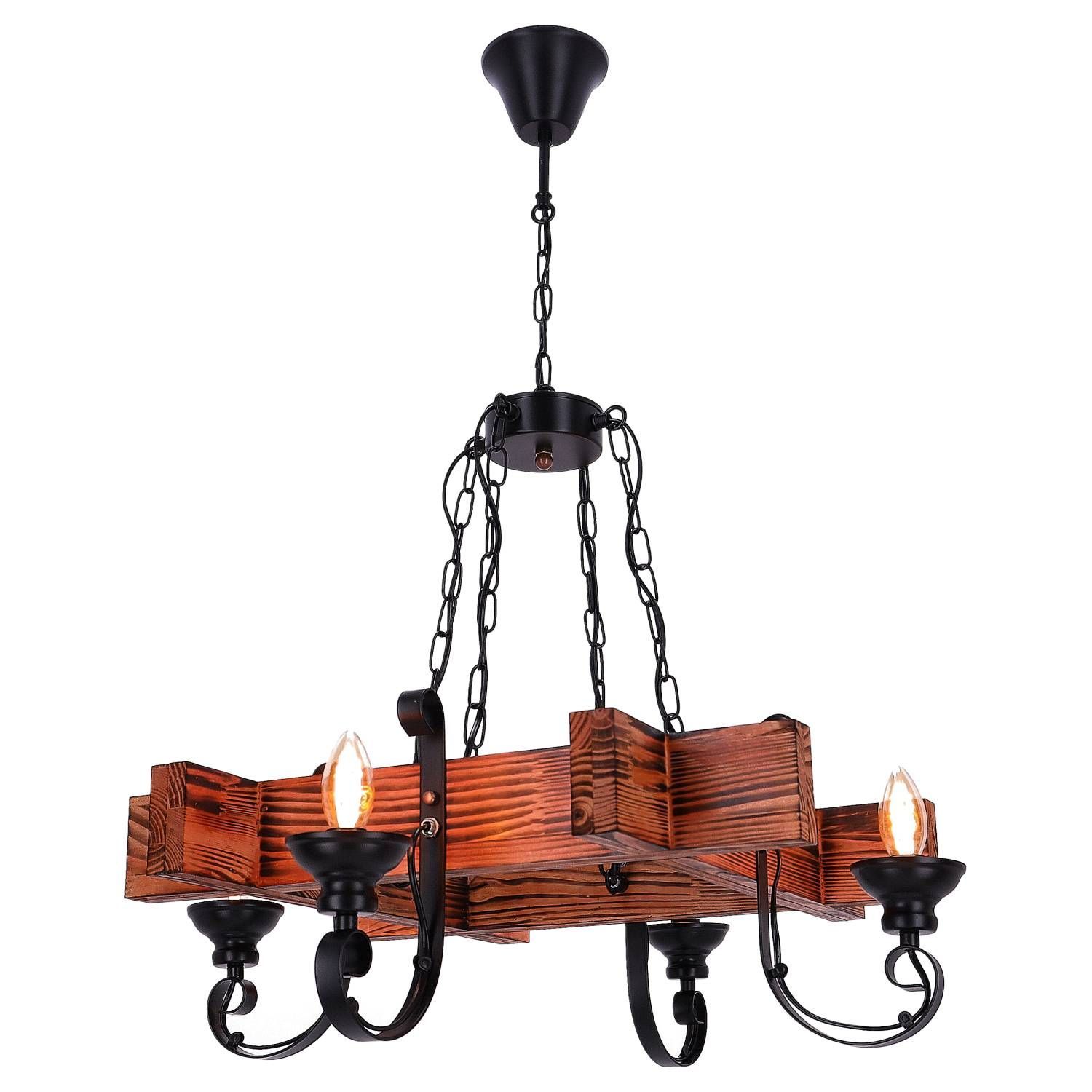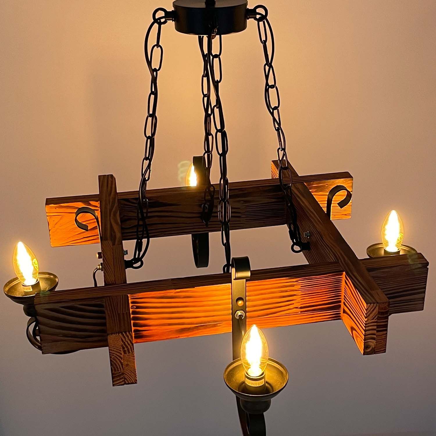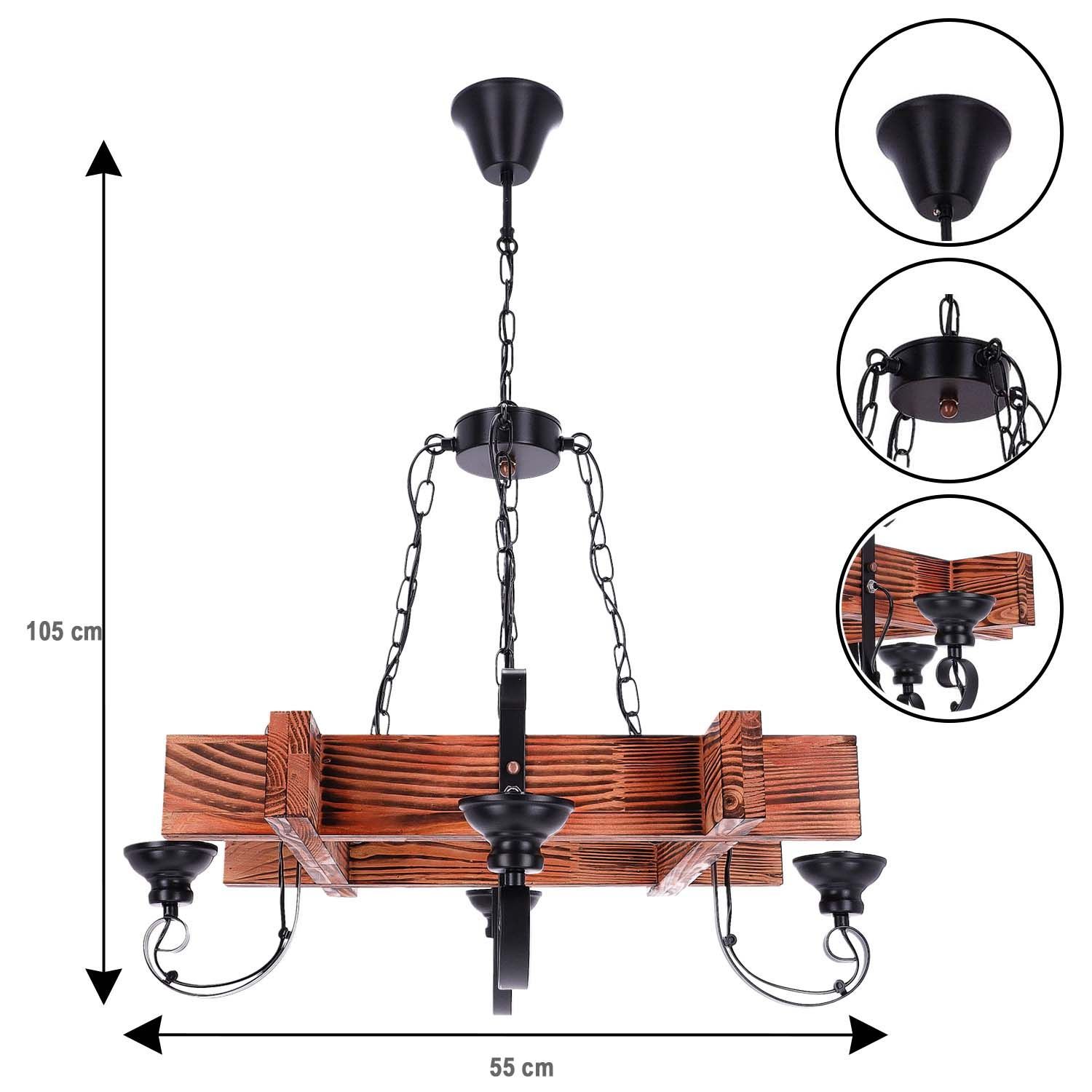 TIBU Hängelampe Holz Vintage Pendelleuchte Pendellampe Modell Hoch Kreuz 4 Lichter