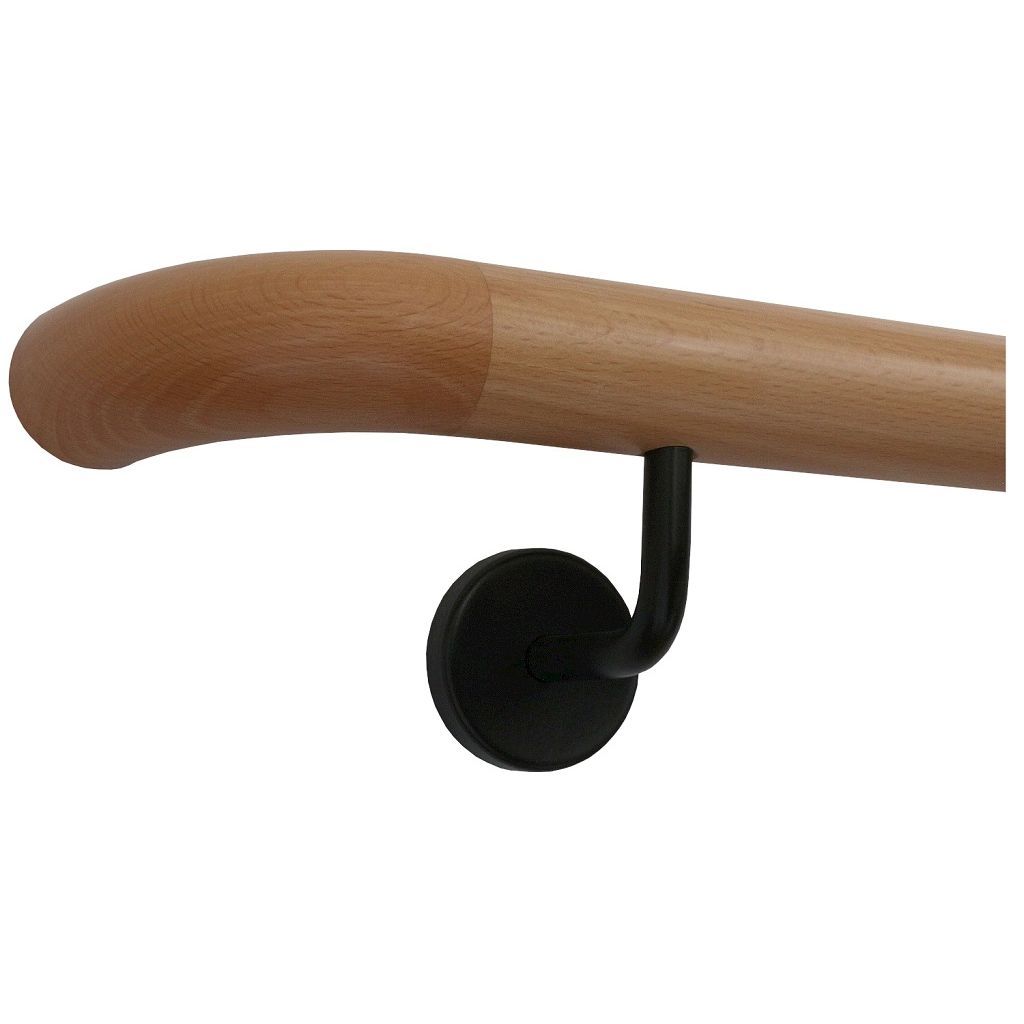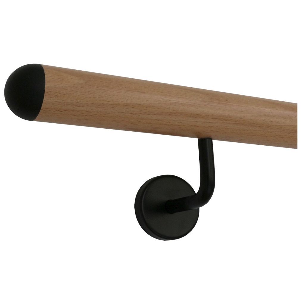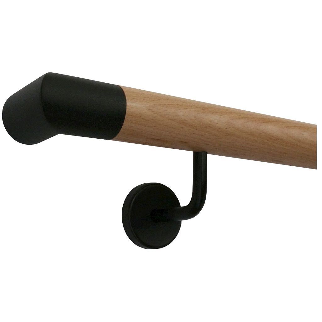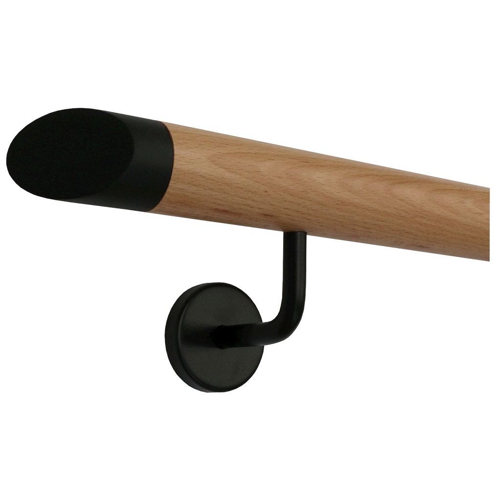 TIBU Handlauf Buche Holz Ø42mm Geländer schwarze gewinkelte Edelstahlhalter und Enden