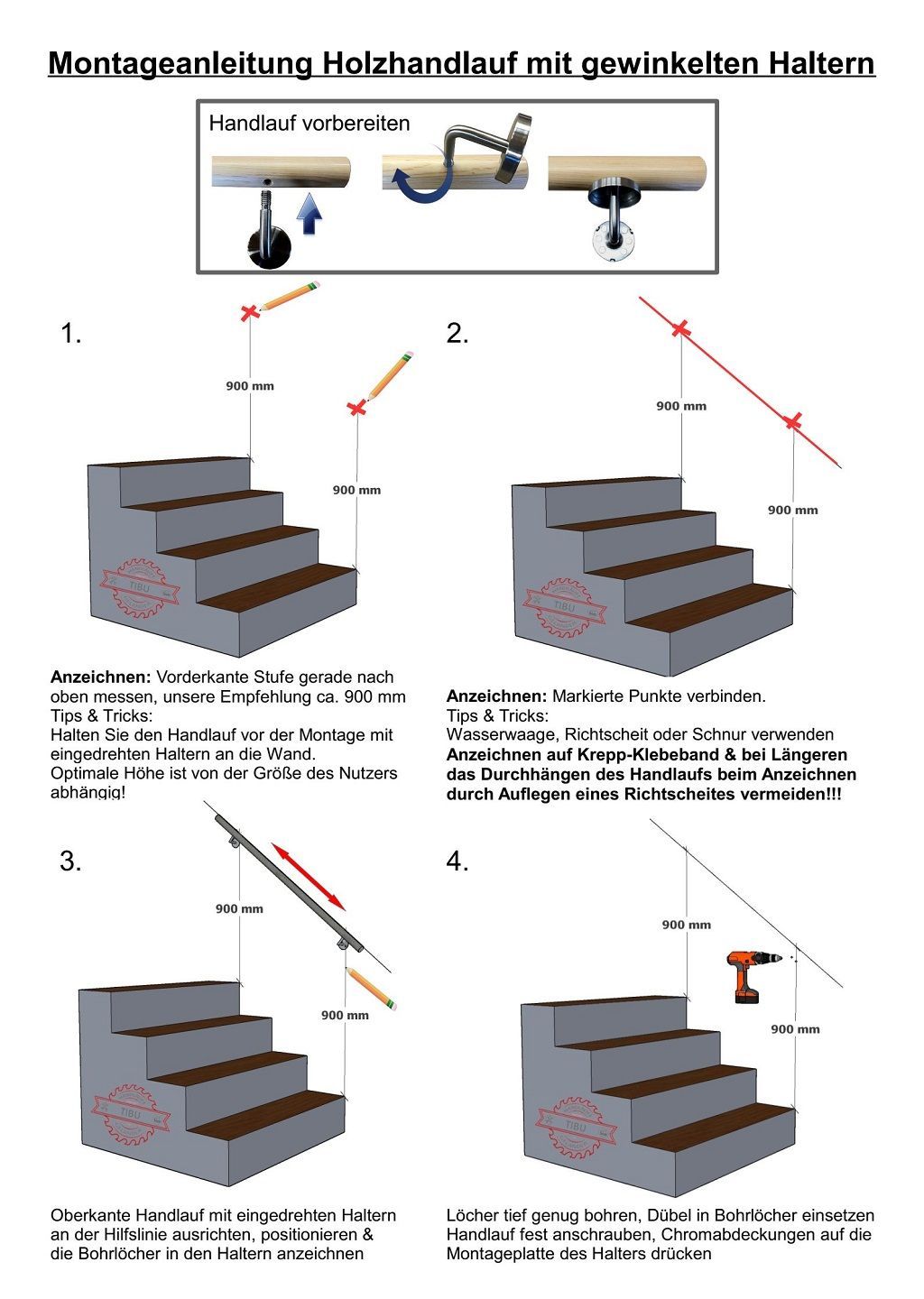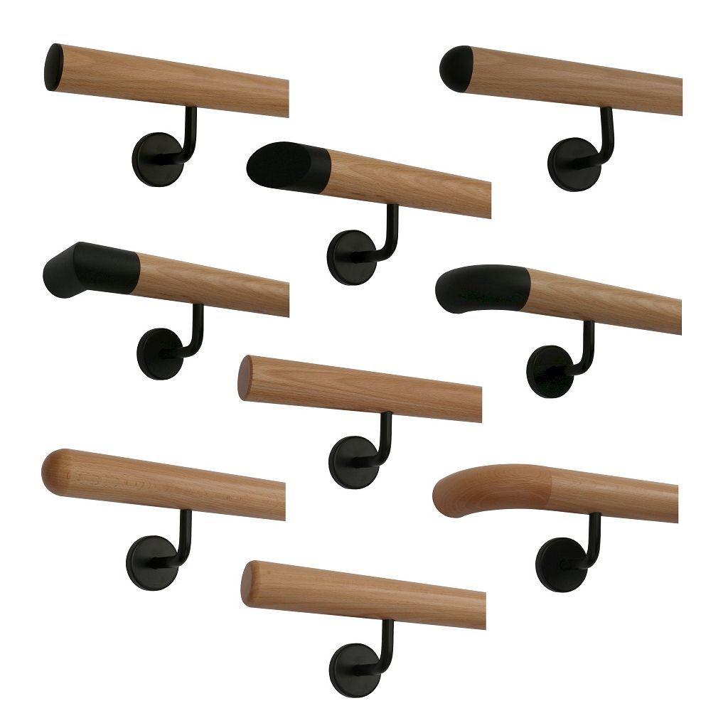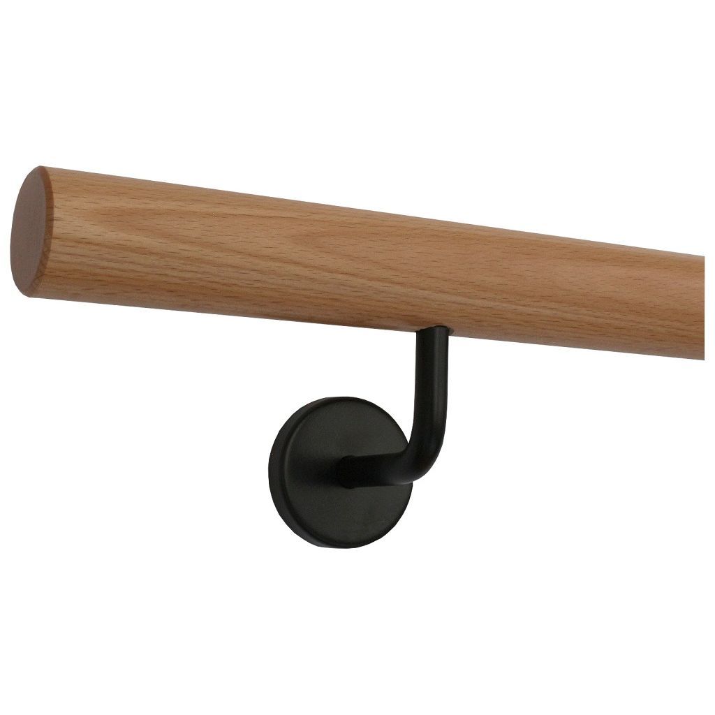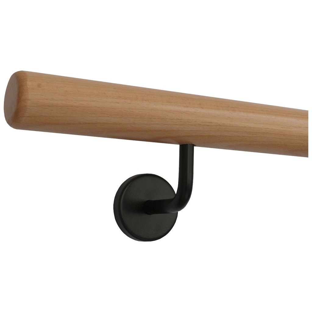 TIBU Handlauf Buche Holz Ø42mm Geländer schwarze gewinkelte Edelstahlhalter und Enden