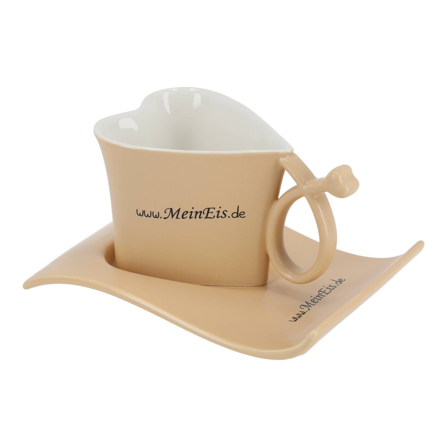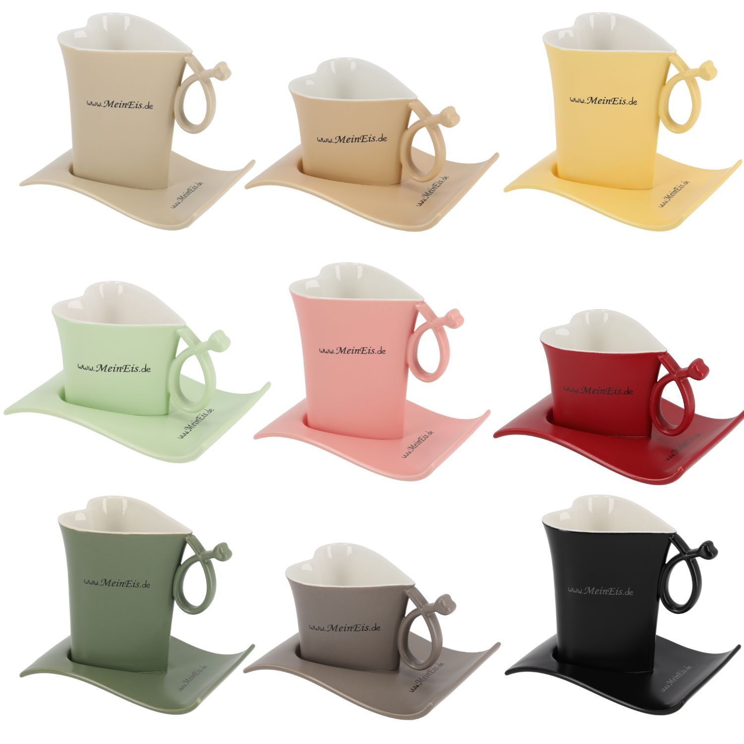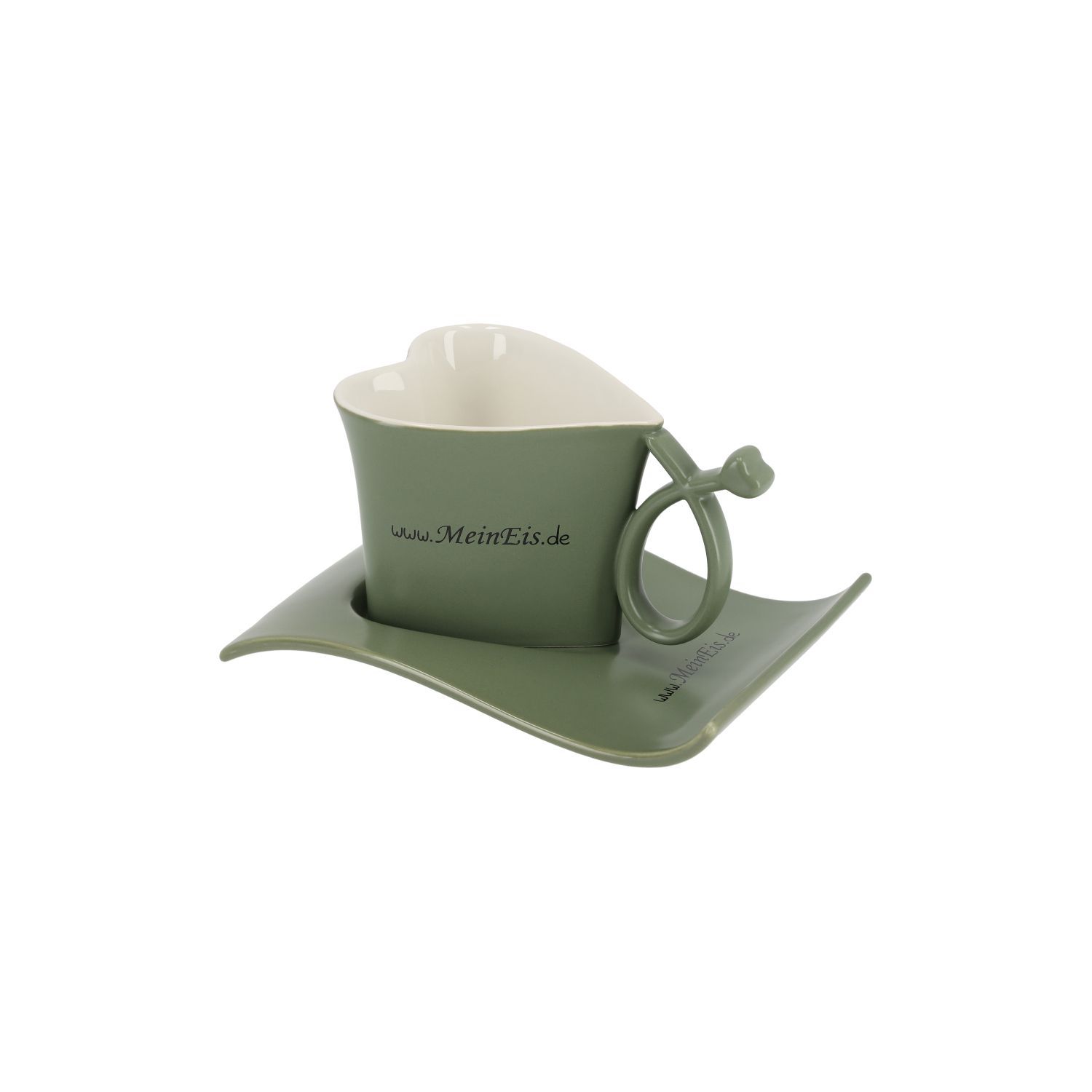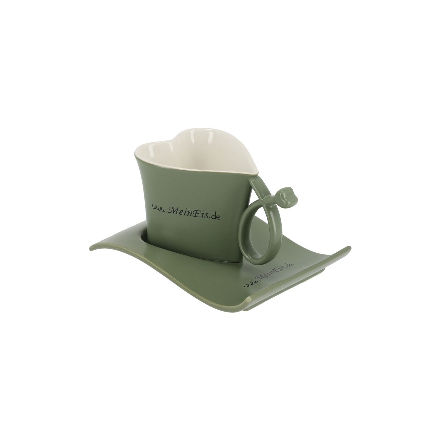 TIBU Tasse und Untertasse Set Herzform Kuchenteller Dessertteller für Kaffee Tee