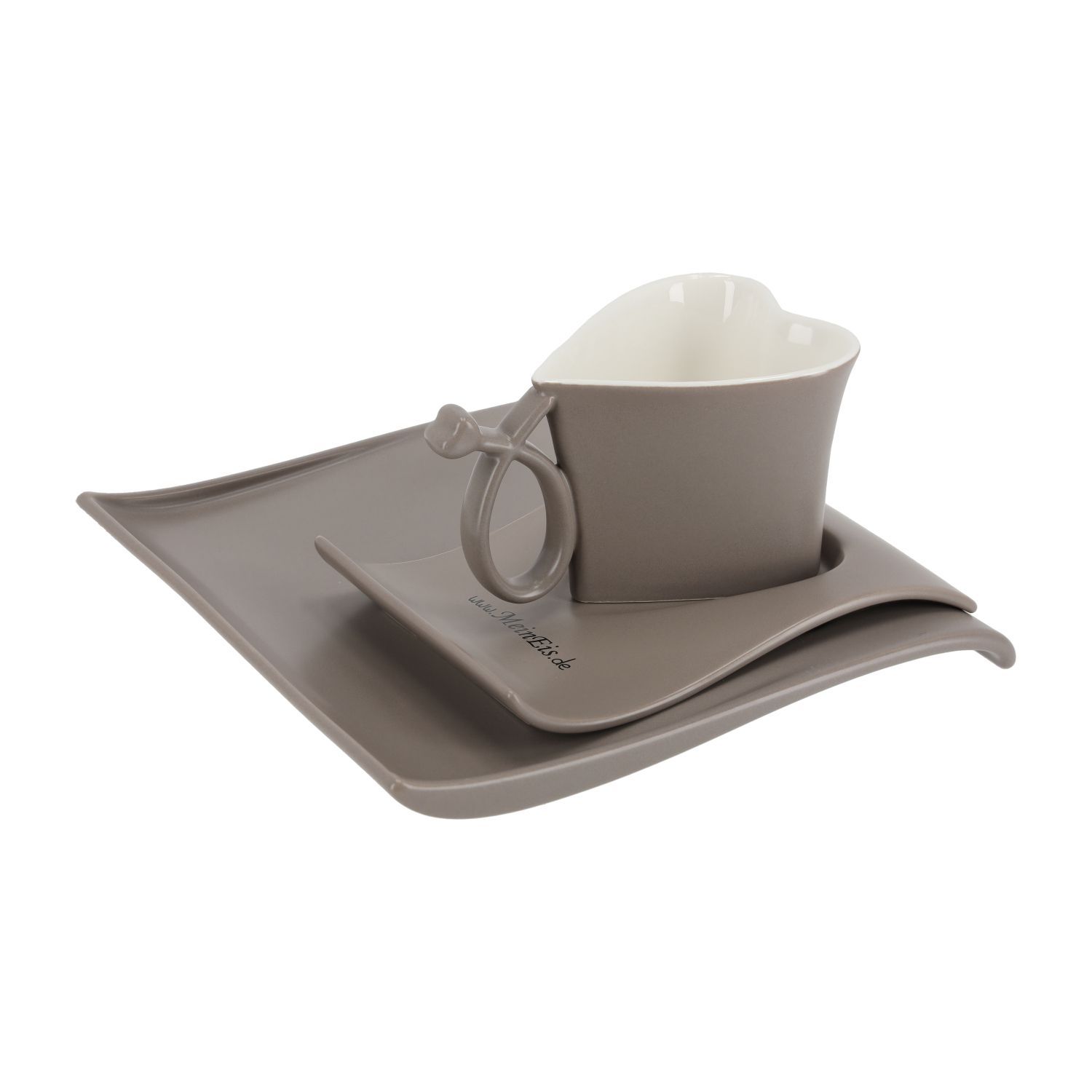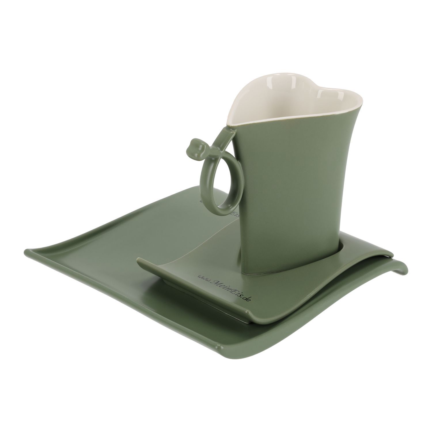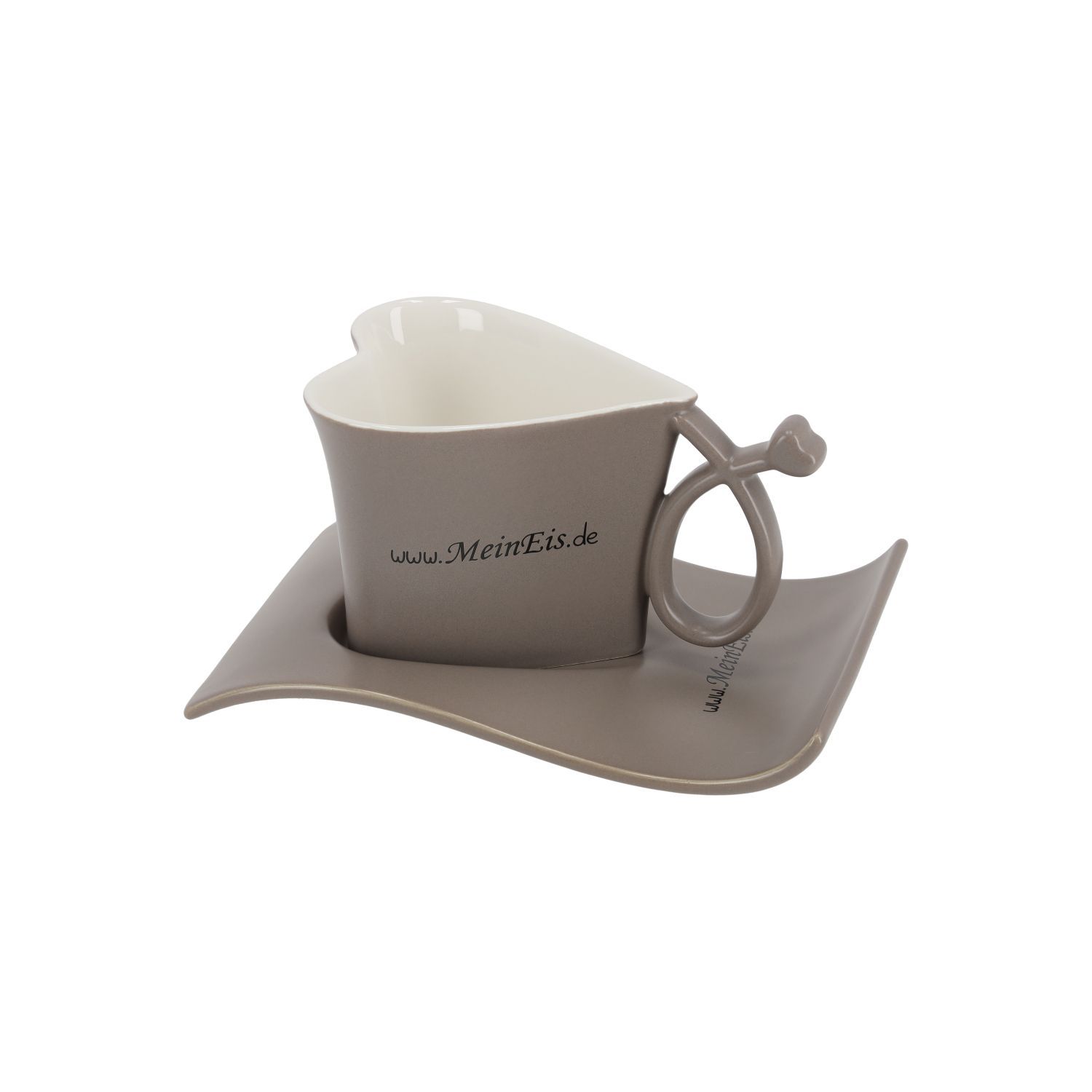 TIBU Tasse und Untertasse Set Herzform Kuchenteller Dessertteller für Kaffee Tee