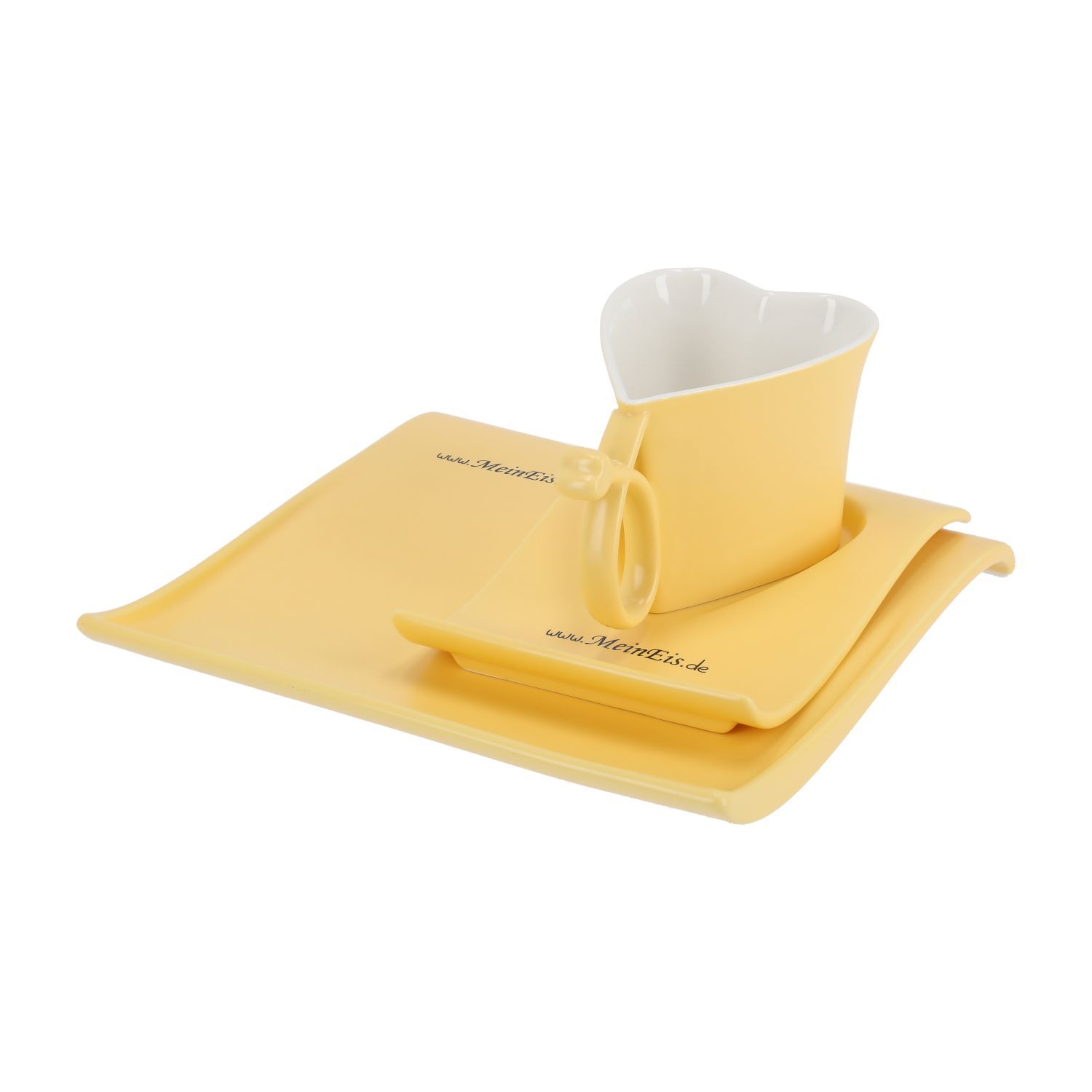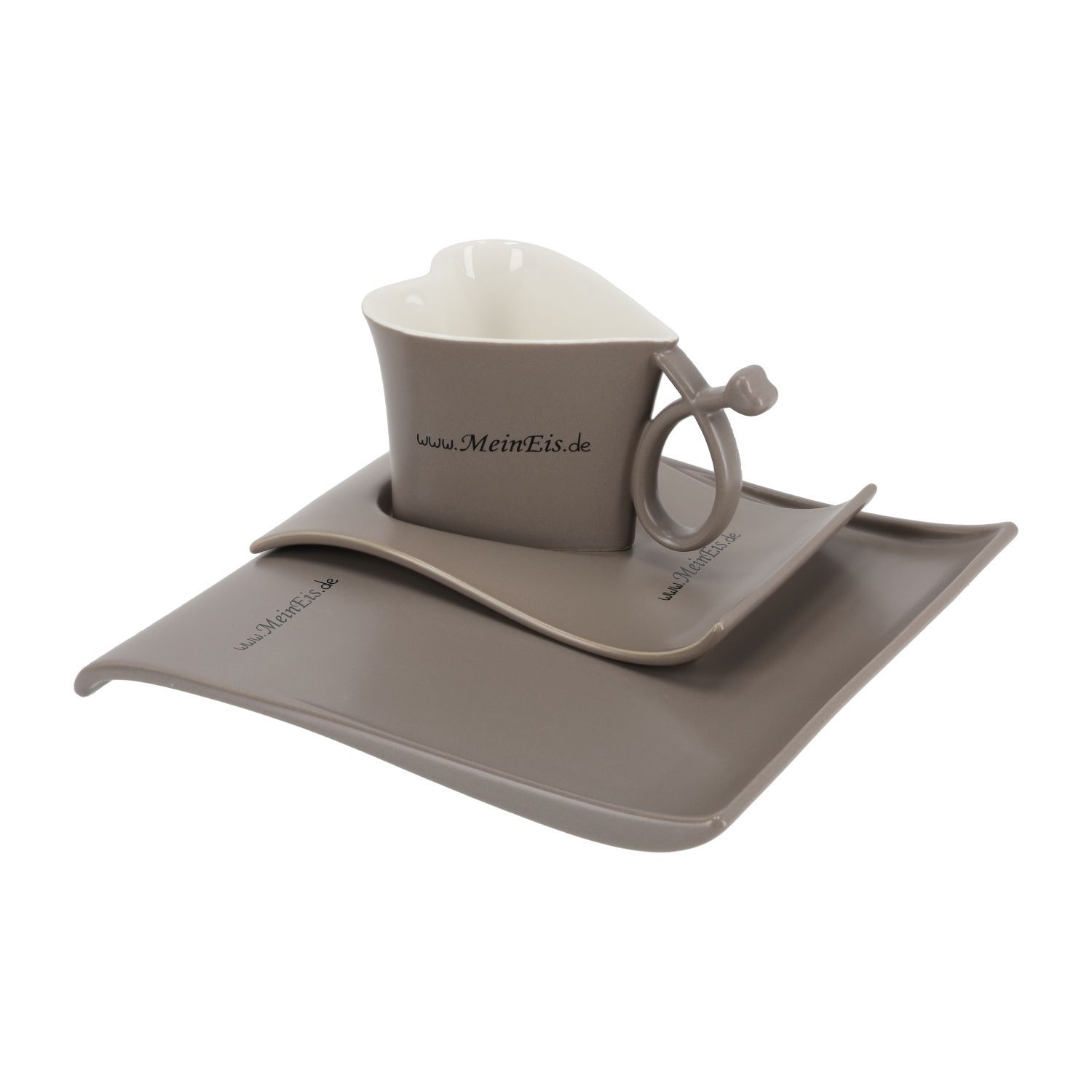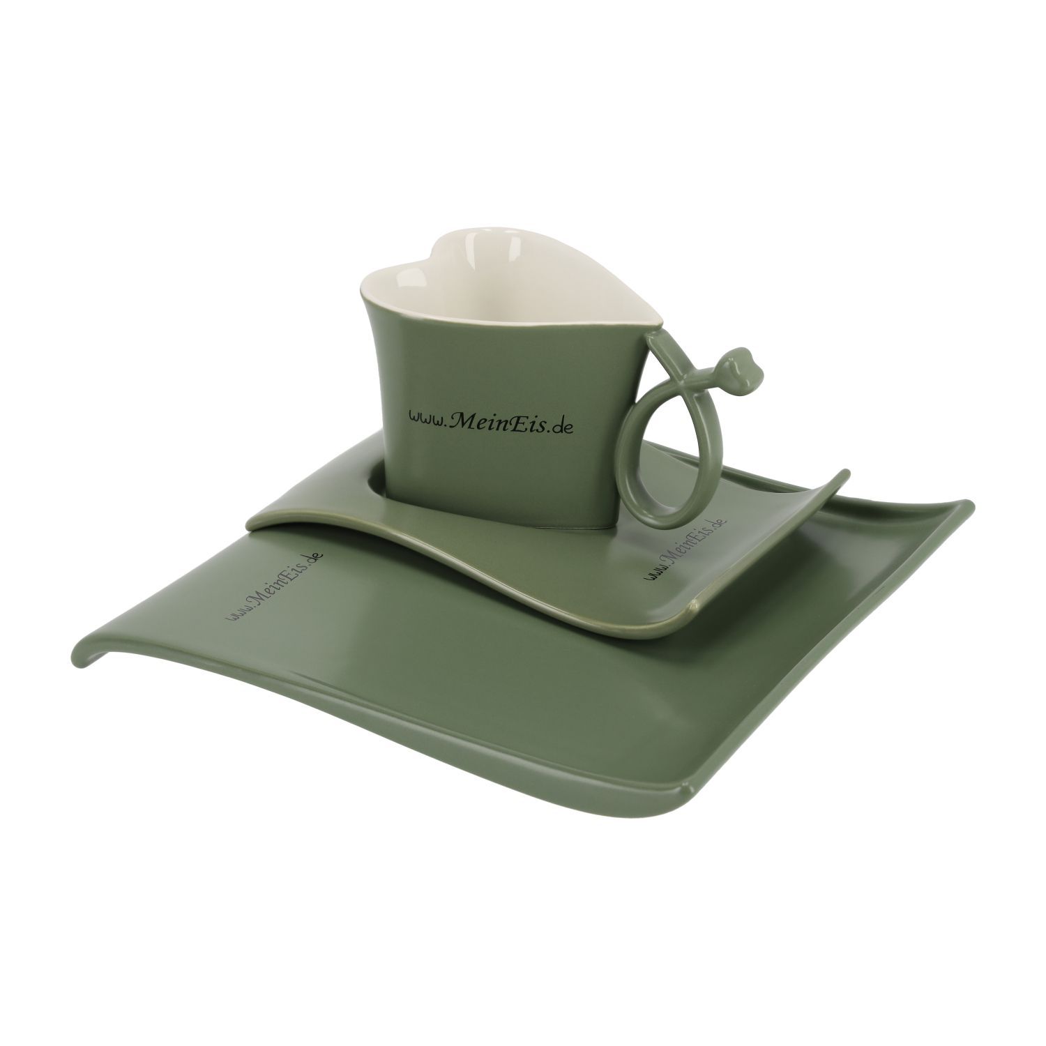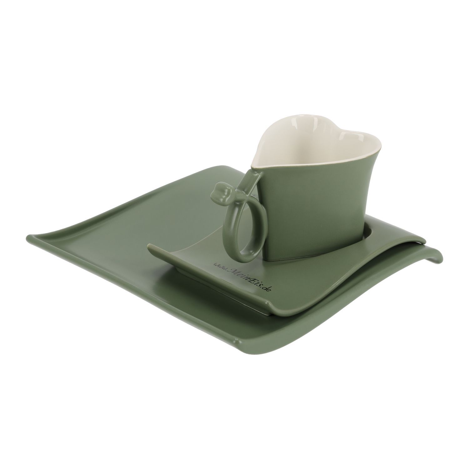 TIBU Tasse und Untertasse Set Herzform Kuchenteller Dessertteller für Kaffee Tee