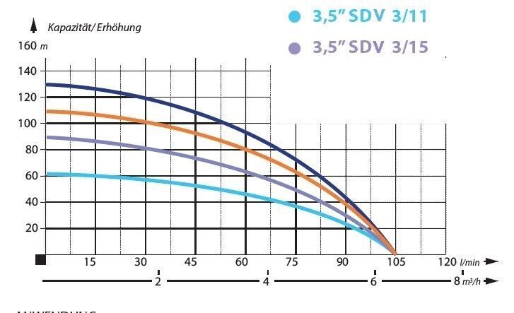 Tiefbrunnenpumpe Brunnenpumpe 3,5"sandverträglich >5% Unterwasserpumpe 25m Kabel
