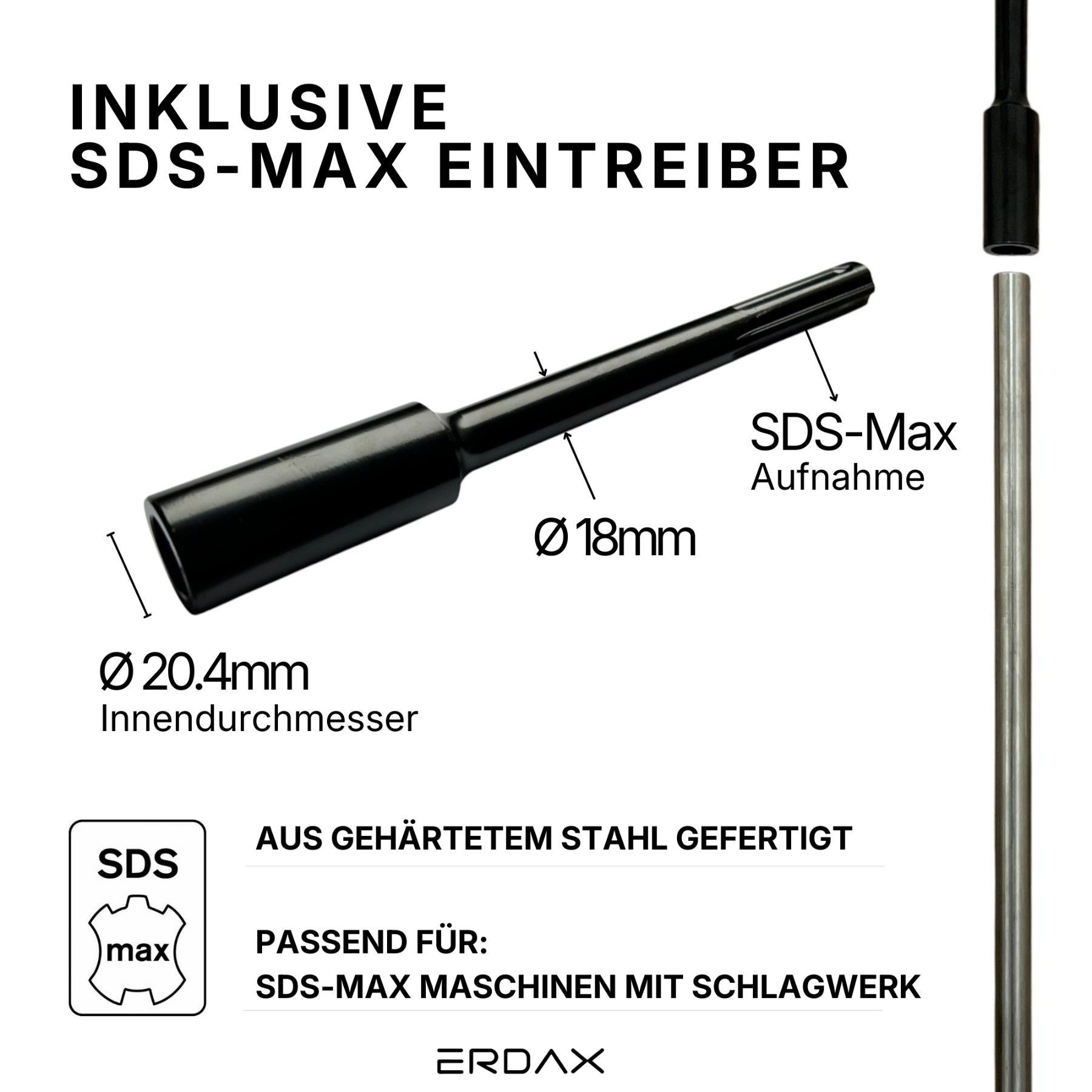 Tiefenerder SET 3x1000mm Ø20mm Niro V4A Inklusive SDS-Max Schlagkopf & Klemme
