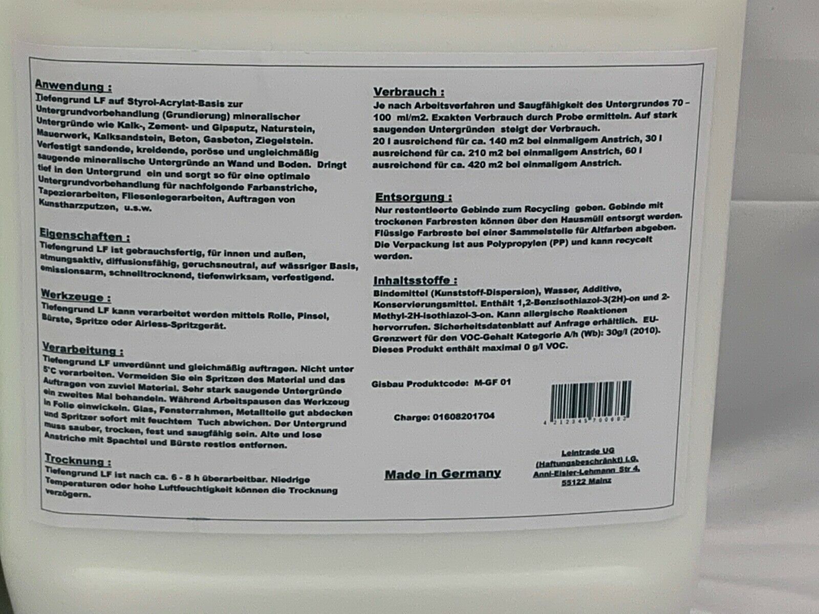 Tiefengrund LF Grundierung Haftgrund Wand Boden Putz (ab 0,95 €/ L) 5 - 300 L