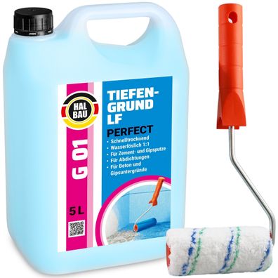 • Tiefengrund Perfect LF 5L Wand Boden Voranstrich Primer G01 + Farbroller 10cm