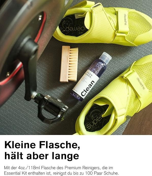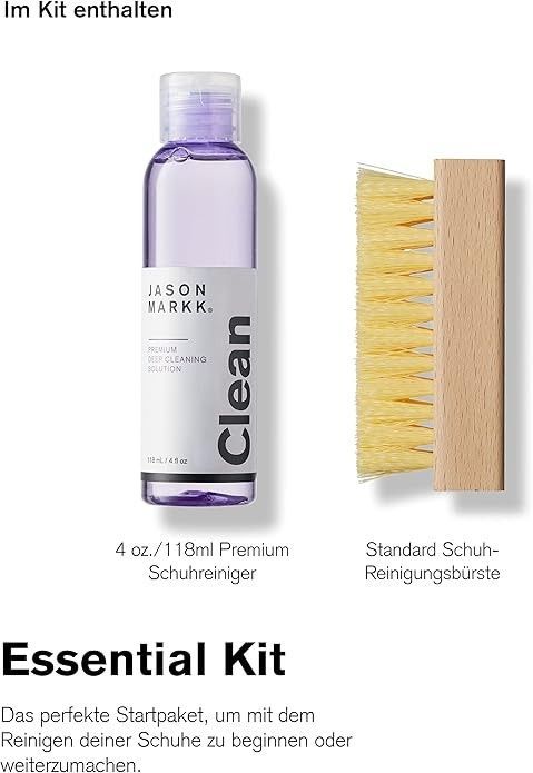 Essential Kit: Unser Set umfasst eine 118 ml Flasche Premium Schuhreiniger und eine Standardbürste für die umfassende Pflege deiner Schuhe. Premium Reinigungslösung: Reinigt effektiv ohne scharfe Chemikalien, reicht für bis zu 100 Paar Sneaker. Standardbürste: Entfernt hartnäckige Flecken von robusten Materialien. Nachhaltige Pflege: Verlängert die Lebensdauer deiner Schuhe und reduziert Abfall.