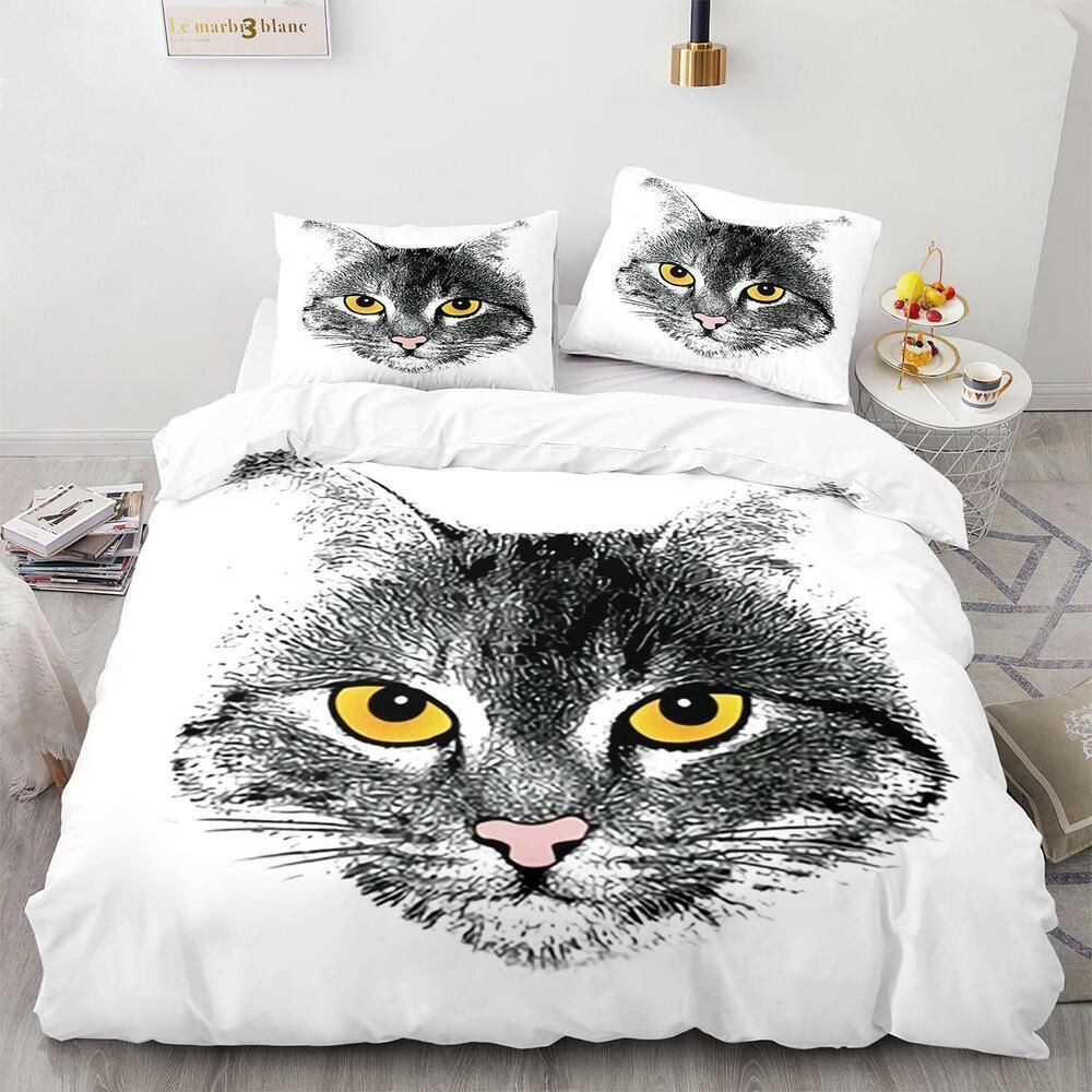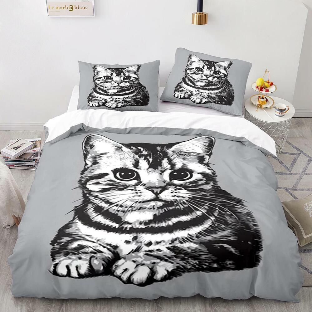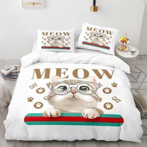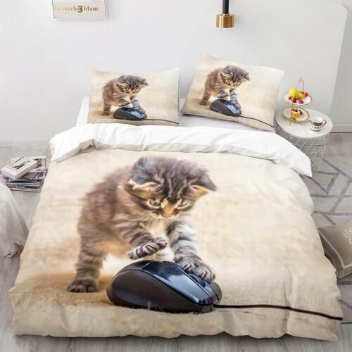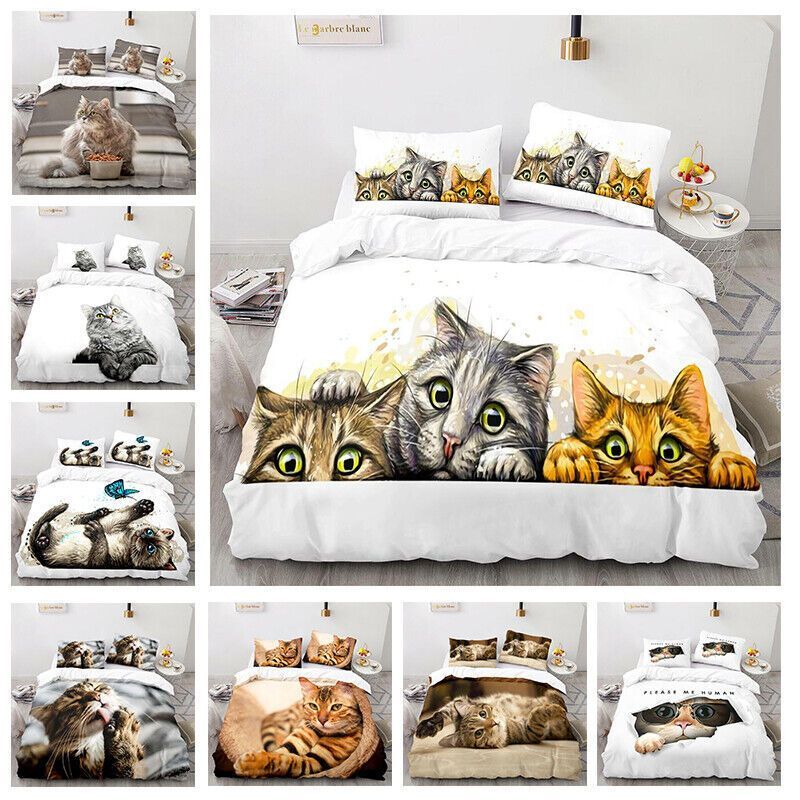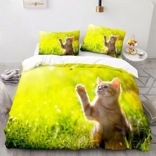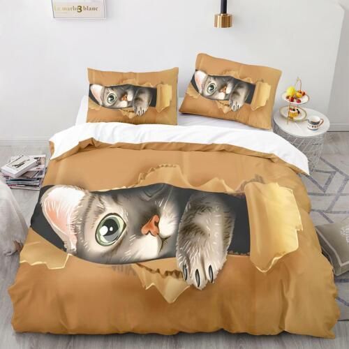 Tier Katze Bettbezug Kissenbezuge Deckenbezug Bettwasche-Set Single Double 3D