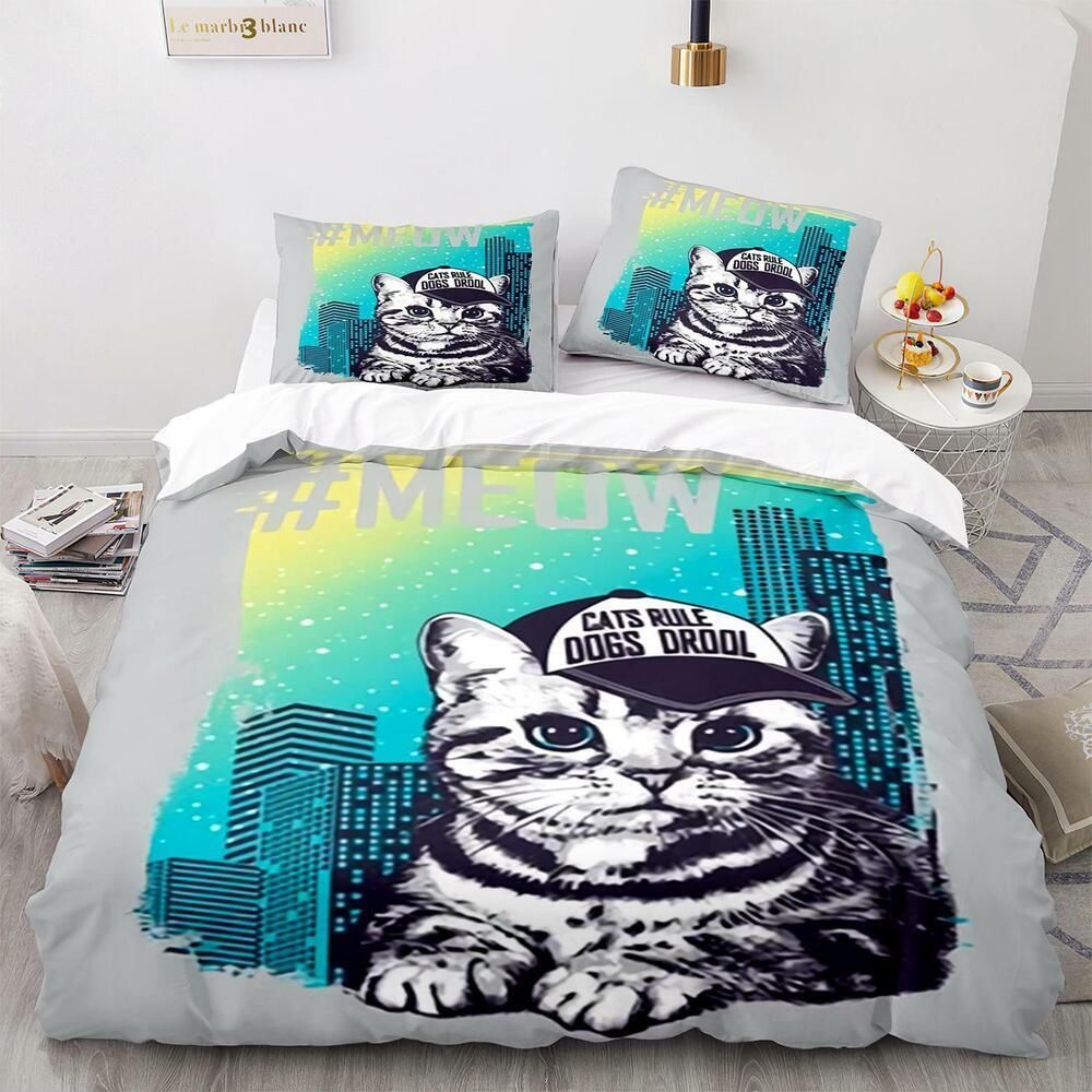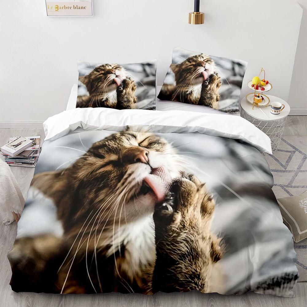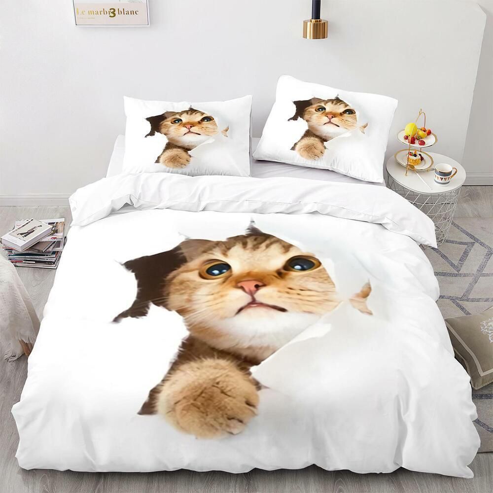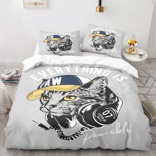 Tier Katze Bettbezug Kissenbezuge Deckenbezug Bettwasche-Set Single Double 3D