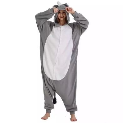 Grauer Waschbar Onesie Erwachsene Tier Cosplay Pyjamas Kigurumi Schlafanzug Plusch