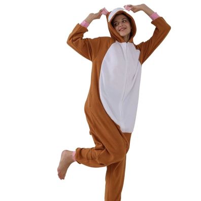 Eichhornchen Onesie Damen Tier Kigurumi Cosplay Pyjamas Halloween Karneval Plusch
