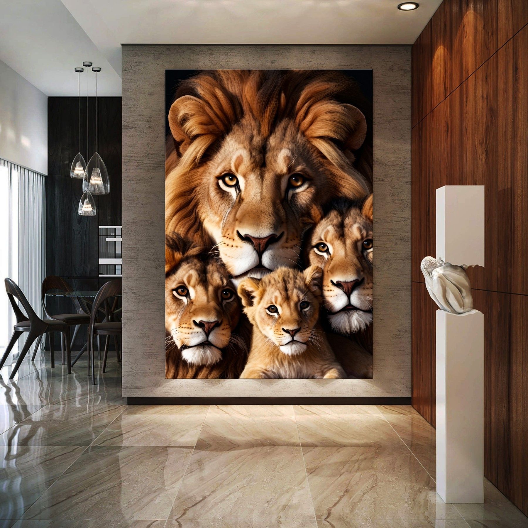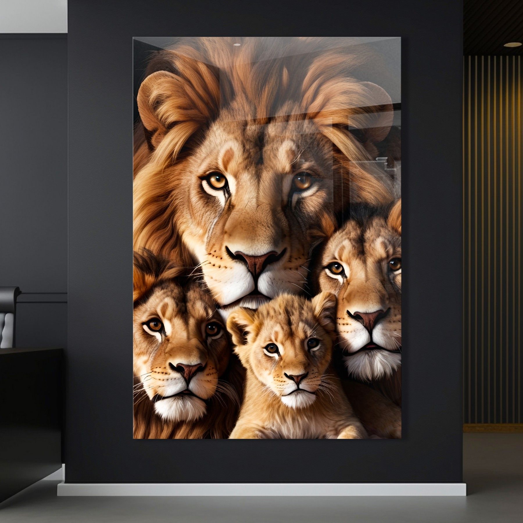 Tier Löwe-Familie, Liebes Wandbild Deko Leinwand , Acrylglas , Poster Kunst
