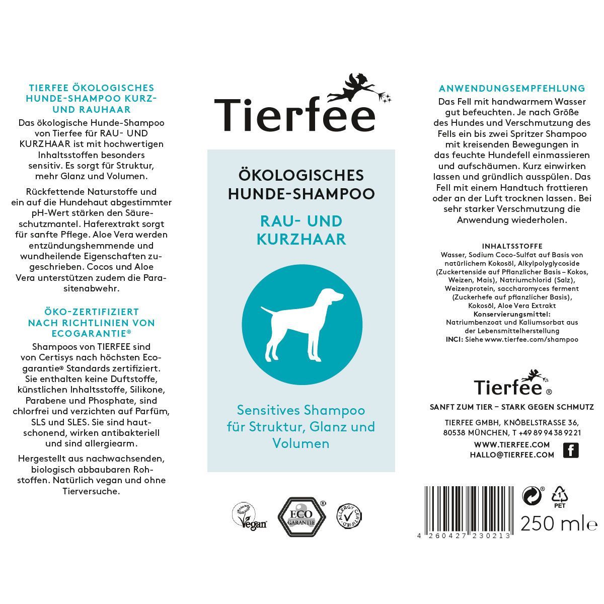 Tierfee Hunde-Shampoo Sparpaket - Extra Senitiv + Rau- und Kurzhaar - 2x 250 ml