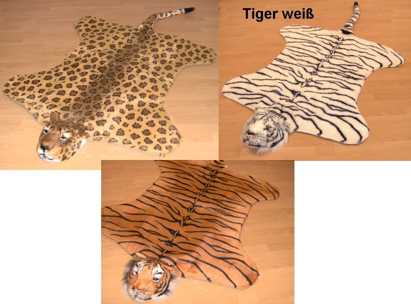 Tierfell mit Kopf Leopard, Tiger, Tiger weiss 110 x 180 cm Kunstfell Silvester