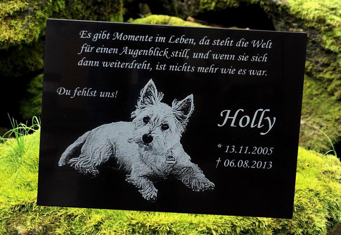 Tiergrabstein Fotogravur Grabstein Granit Katze Hund Gedenkstein Wunschgravur