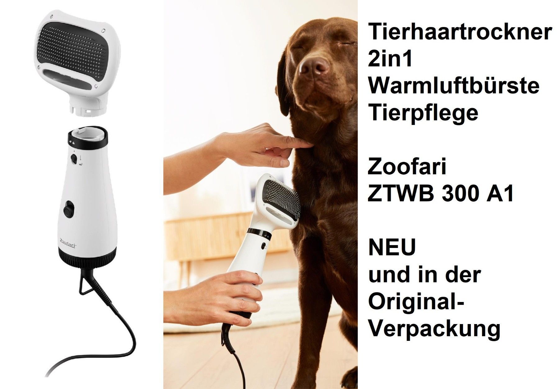 Tierhaartrockner 2in1 Warmluftbürste Tierpflege Zoofari ZTWB 300 A1. NEU & in der OVP