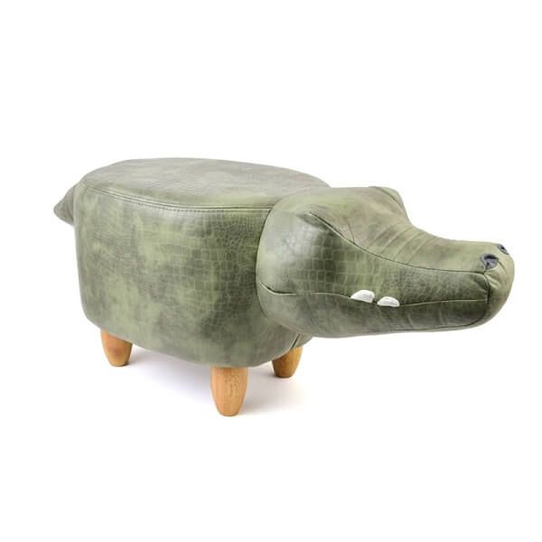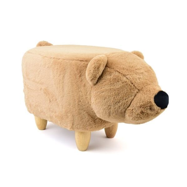 Kindgerechter Hocker in Tierform Erhältlich in verschiedenen Designs Bewusster Verzicht auf Augen und andere Kleinteile aus Kunststoff - keine Gefahr für Kleinkinder durch Verschlucken Füße aus Holz Korpus entweder mit Plüsch (Bär) oder Kunstleder (Krokodil, Elefant) bezogen Angenehme Polsterung Ohn