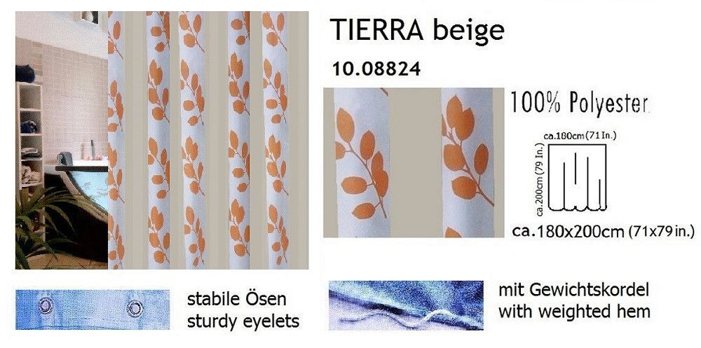 Leifheit Tierra Beige Textil Duschvorhang 180 x 200 cm