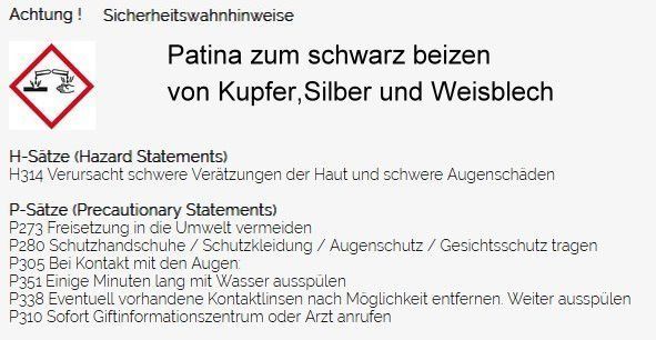 Tiffany Patina zum schwarz beizen von Kupfer, Silber und Weisblech