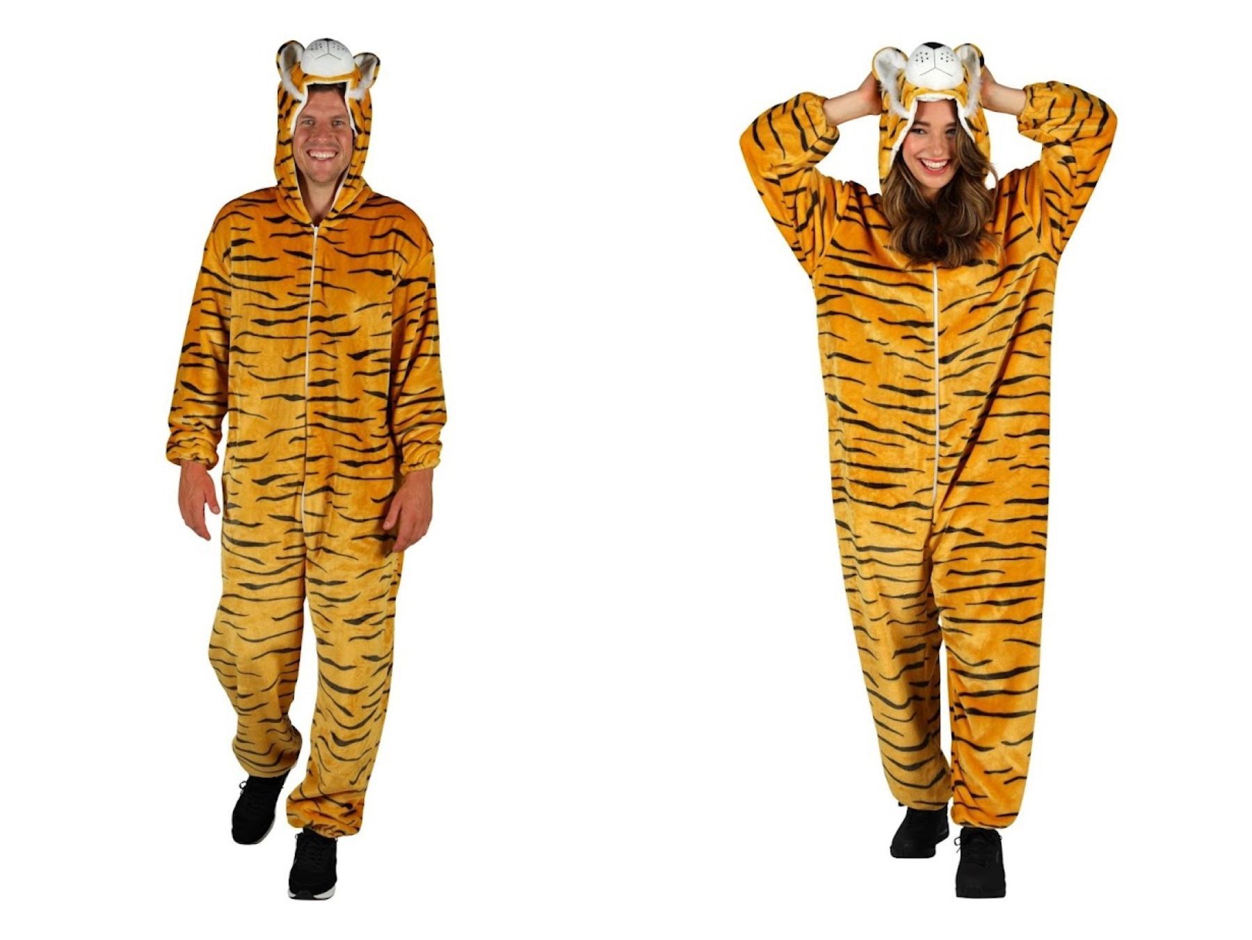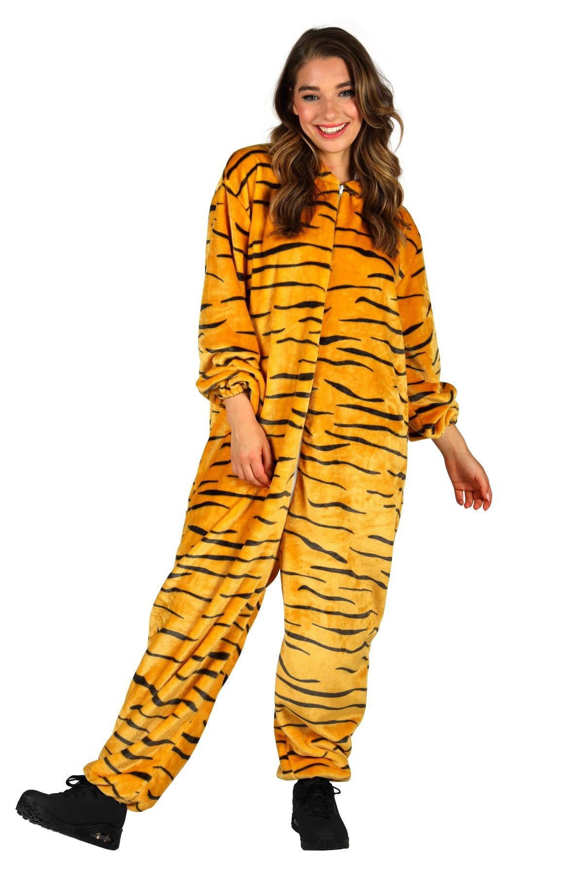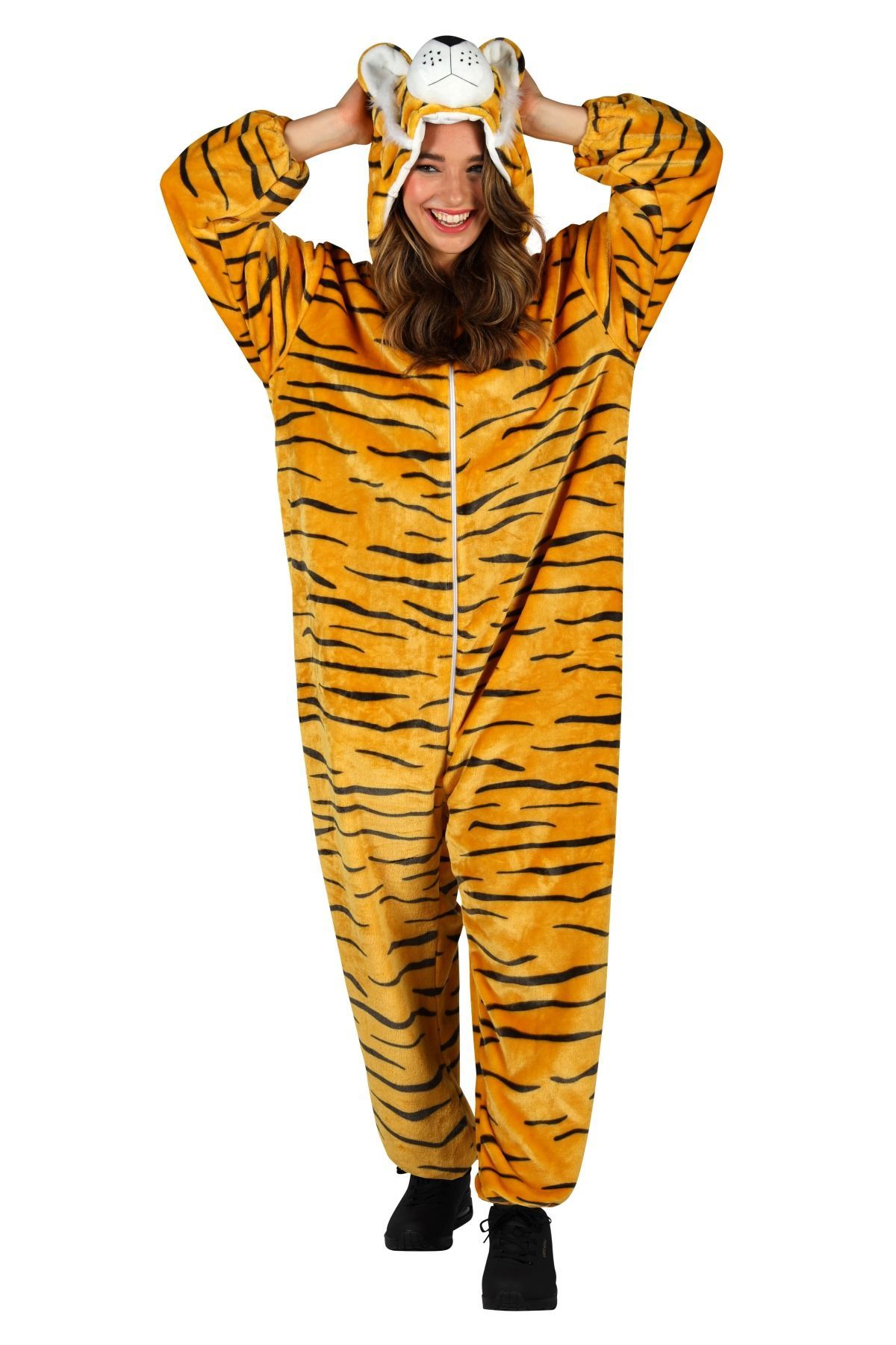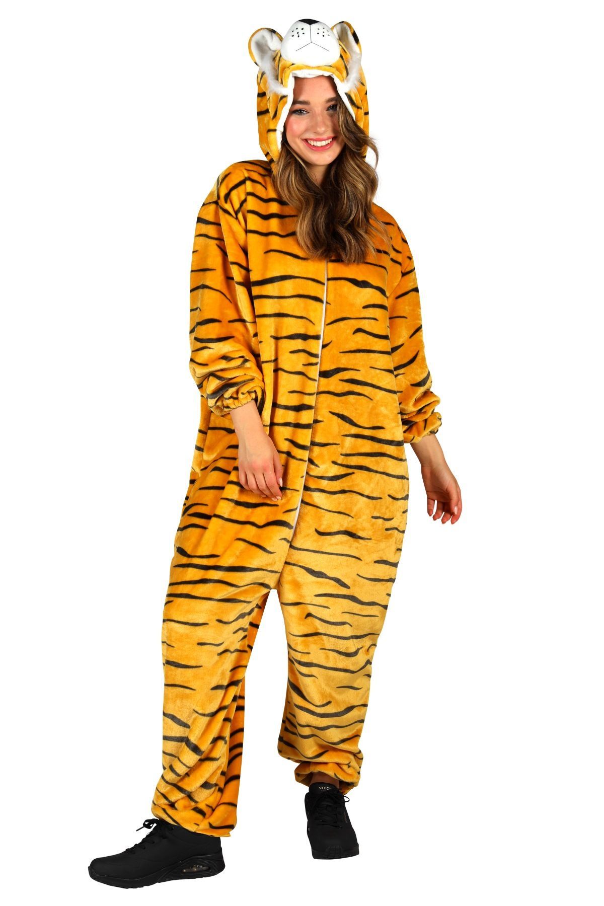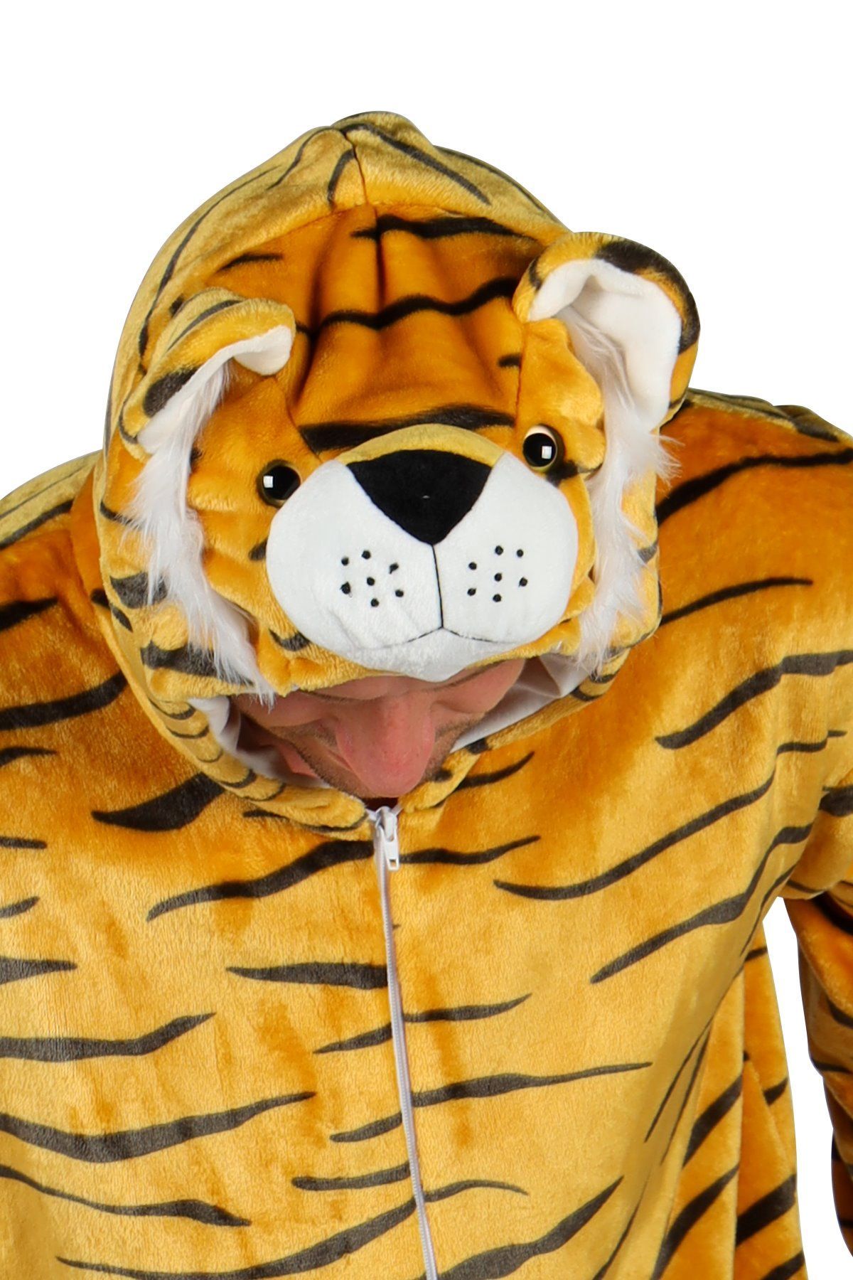 Tiger Kostüm Damen Herren Plüschanzug Overall Tierkostüm Zoo Karneval Fasching