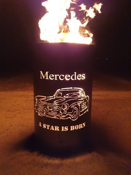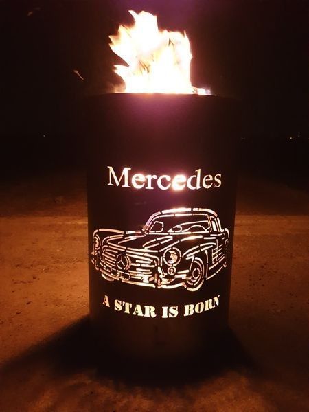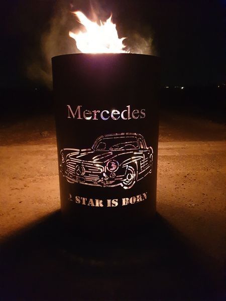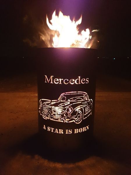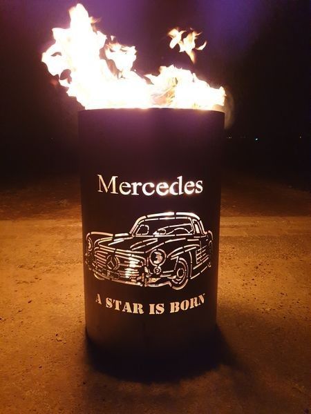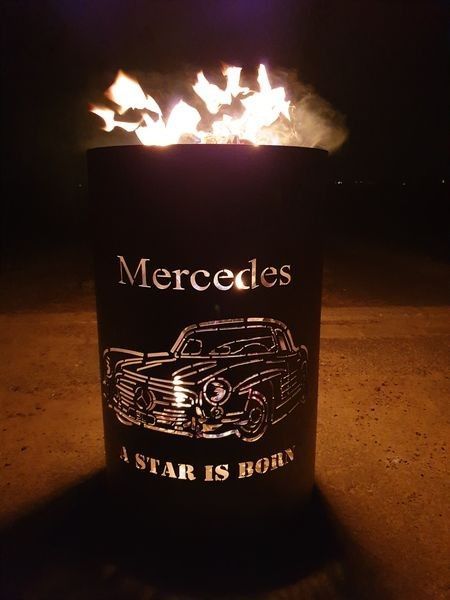 Feuertonne Feuerkorb mit Motiv Mercedes - A Star is born Der Eycatcher auf jeder Garten Party und ein Highlight bei ihrem nächsten Event. Sobald die Feuertonne in Betrieb genommen wird erscheint das Motiv in voller Schönheit und sorgt für gute Stimmung und staunende Gesichter. Nebenbei sorgt die Ton