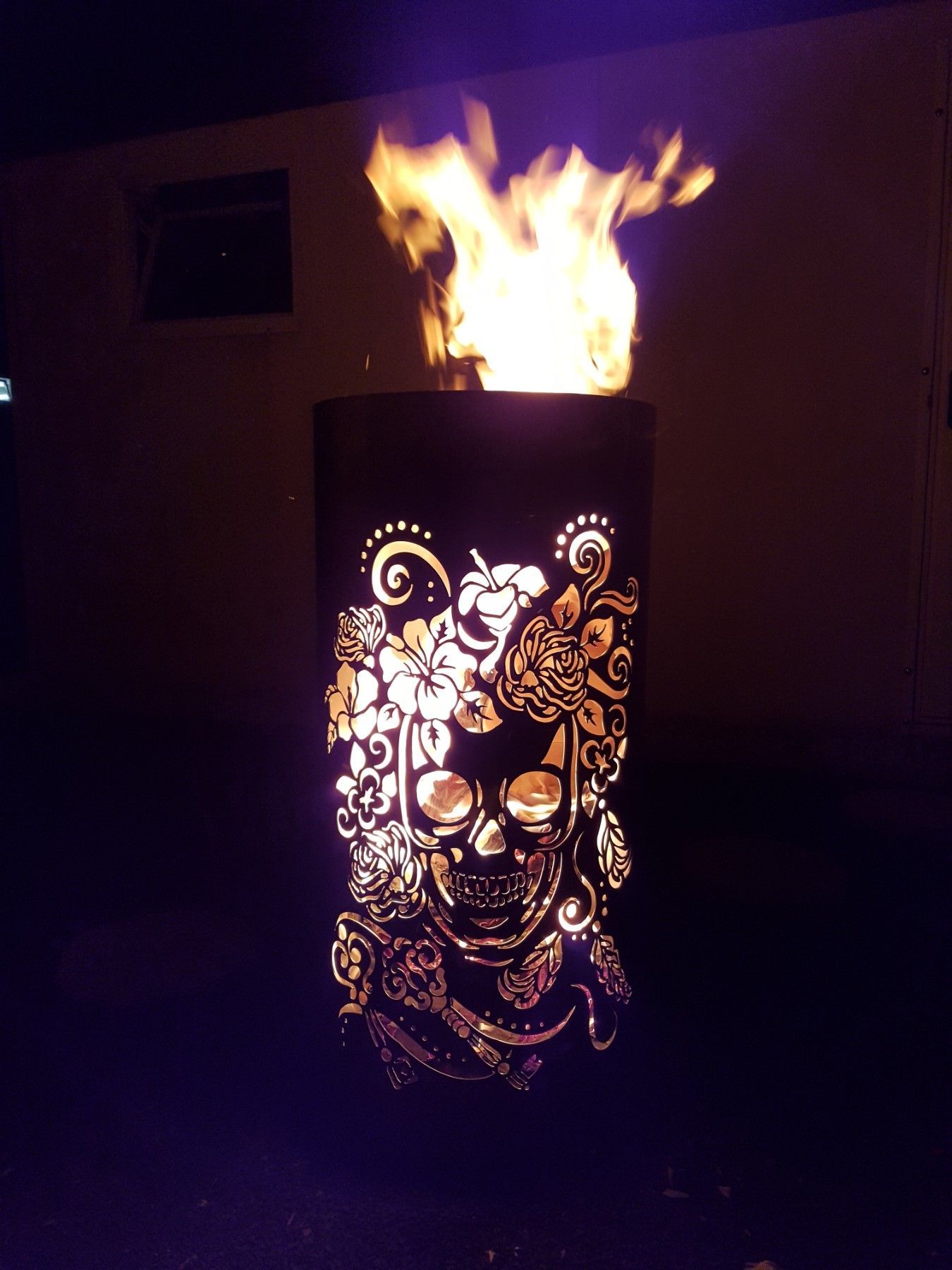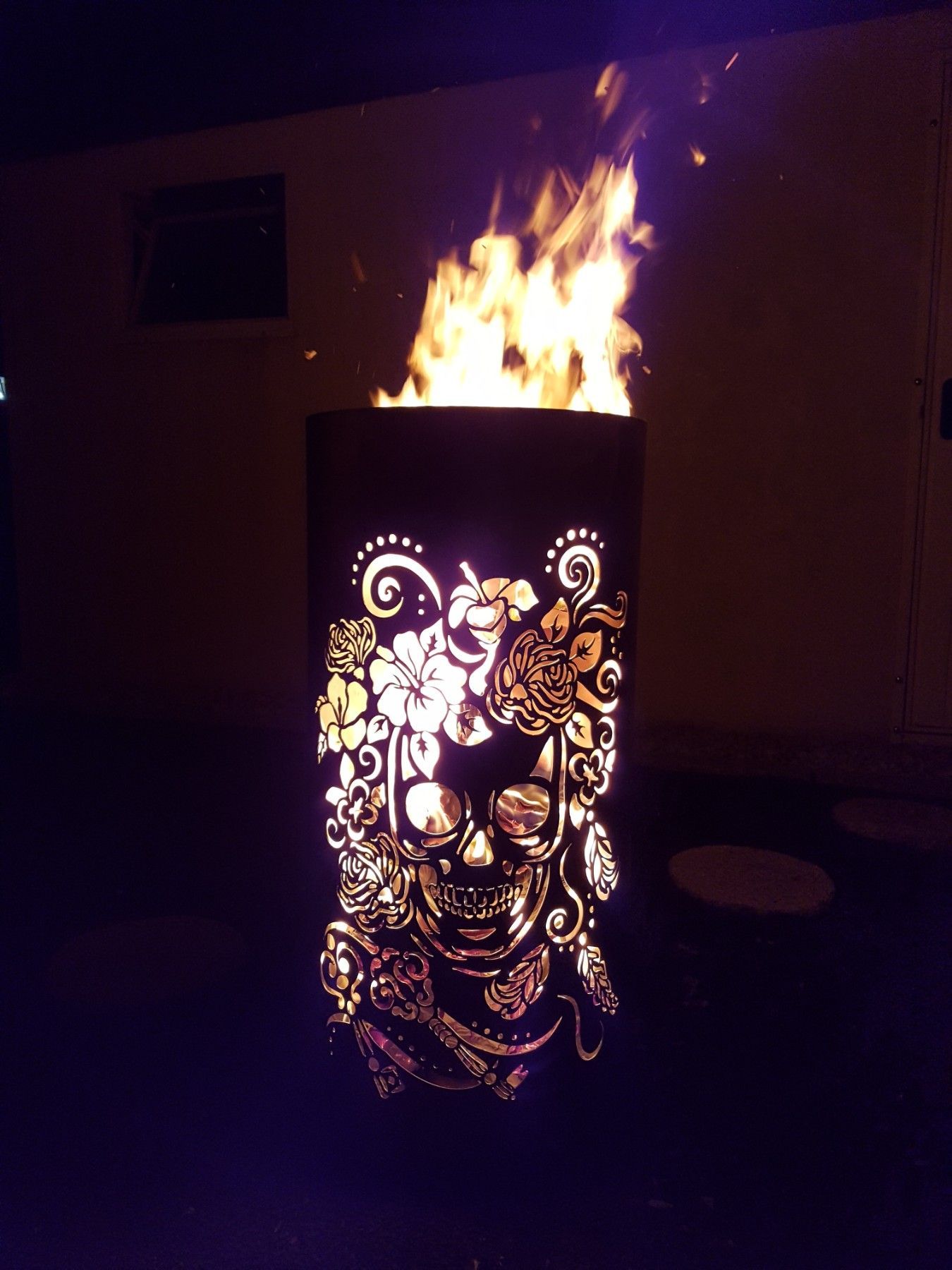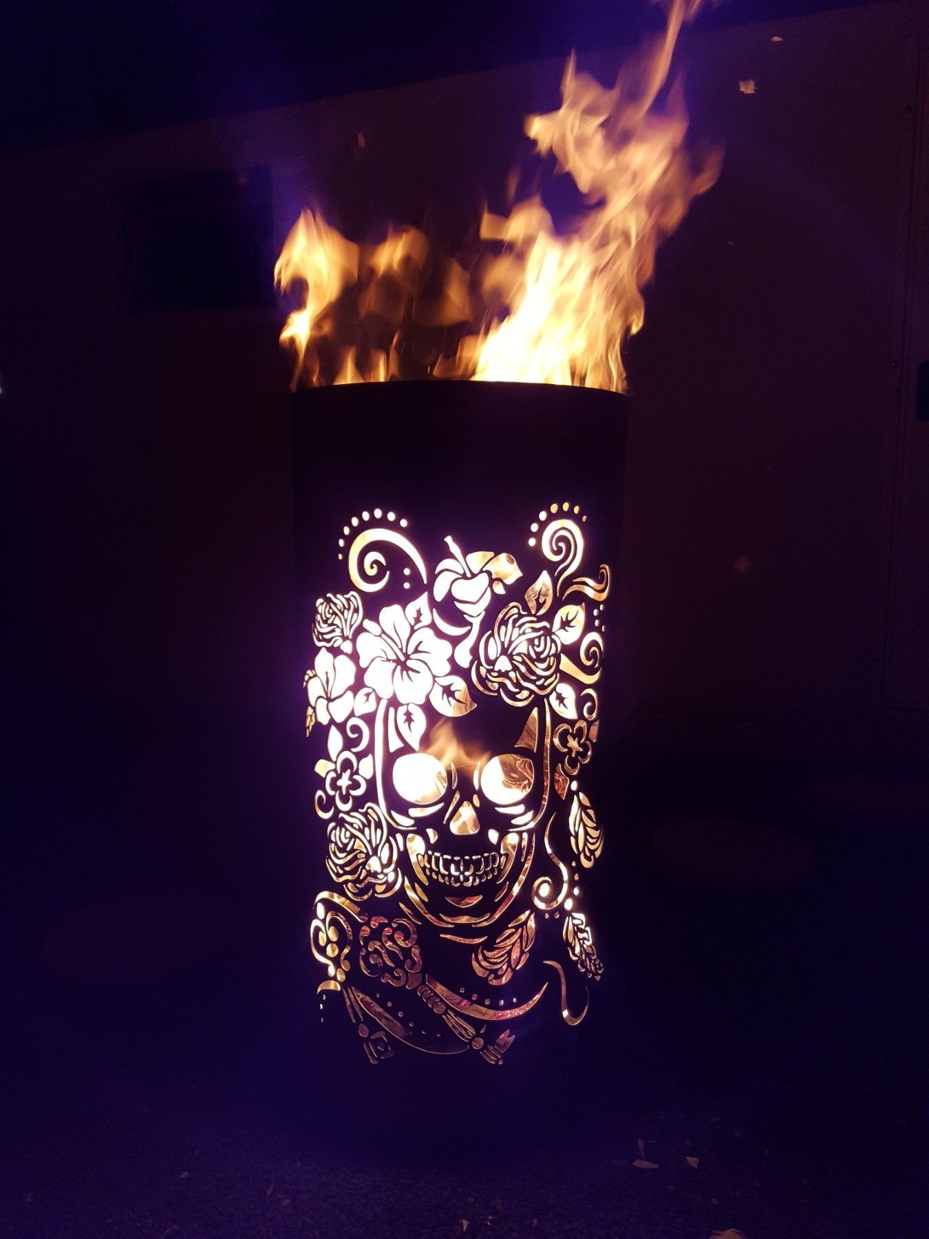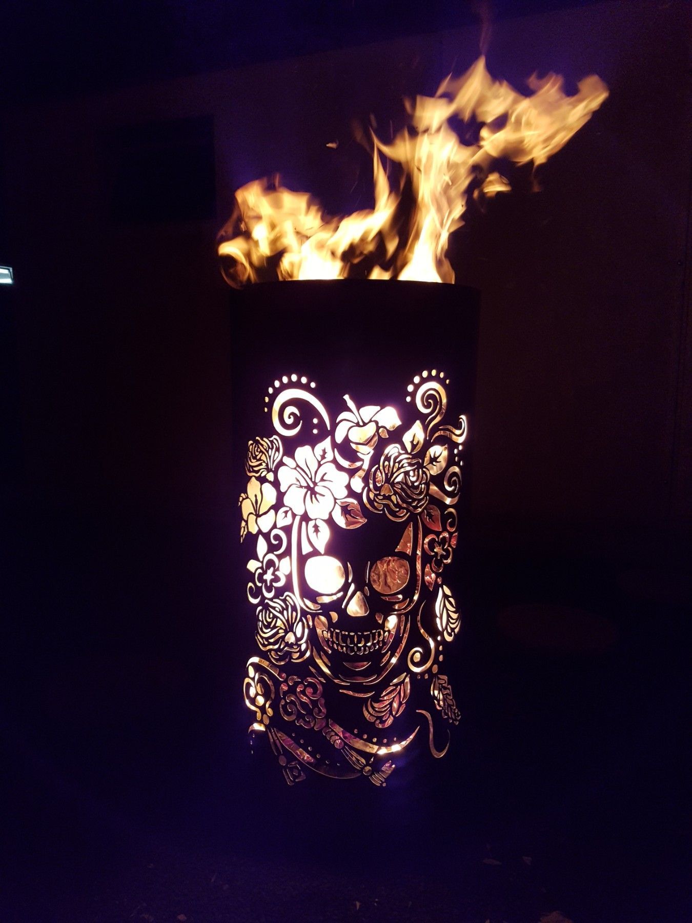 Coole Feuertonne Feuerkorb mit Motiv Skull and Flowers Der Eycatcher auf jeder Garten Party und ein Highlight bei ihrem nächsten Event. Sobald die Feuertonne in Betrieb genommen wird erscheint das Motiv in voller Schönheit und sorgt für gute Stimmung und staunende Gesichter. Nebenbei sorgt die Tonne
