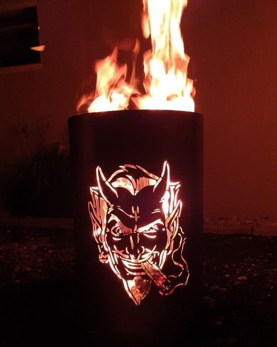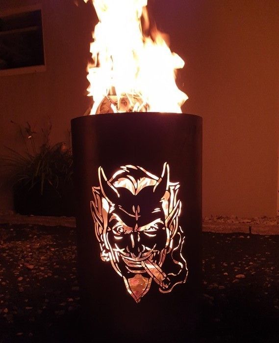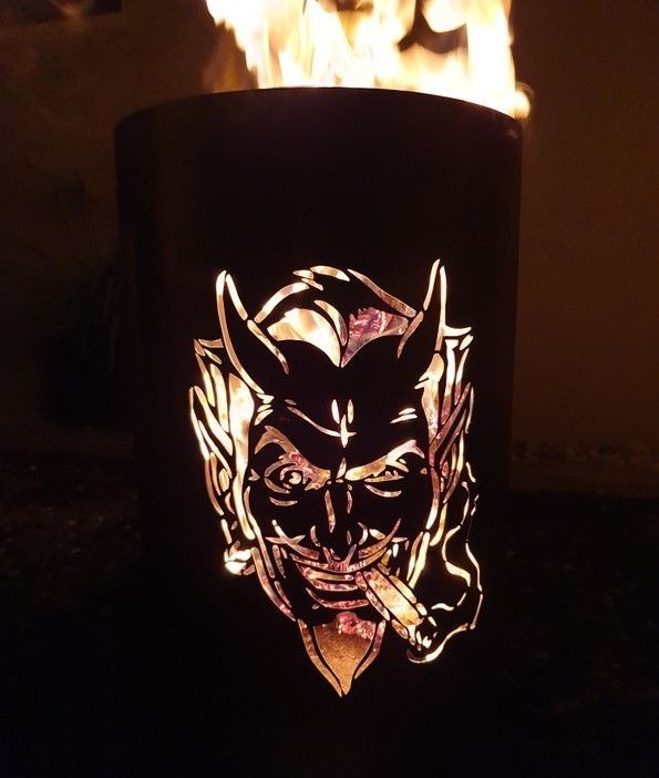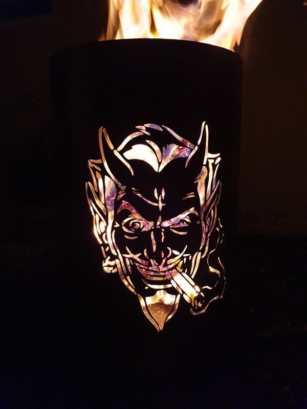 Coole Feuertonne Feuerkorb mit Motiv Smoking Devil - Rauchender Teufel Der Eycatcher auf jeder Garten Party und ein Highlight bei ihrem nächsten Event. Sobald die Feuertonne in Betrieb genommen wird erscheint das Motiv in voller Schönheit und sorgt für gute Stimmung und staunende Gesichter. Nebenbei