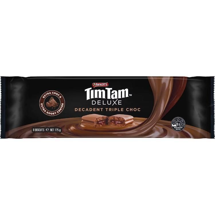 Tim Tam DELUXE Decadent Triple Choc Biscuits Schokokekse Karton Bite - Sip - Slam Tim Tam-Kekse sind Australiens beliebteste Schokoladenkekse. Mit einer einzigartigen Kombination aus knusprigem Keks, Cremefüllung und Schokoladenüberzug ist es ein Genuss, den Du gerne mit Freunden und Familie teilen