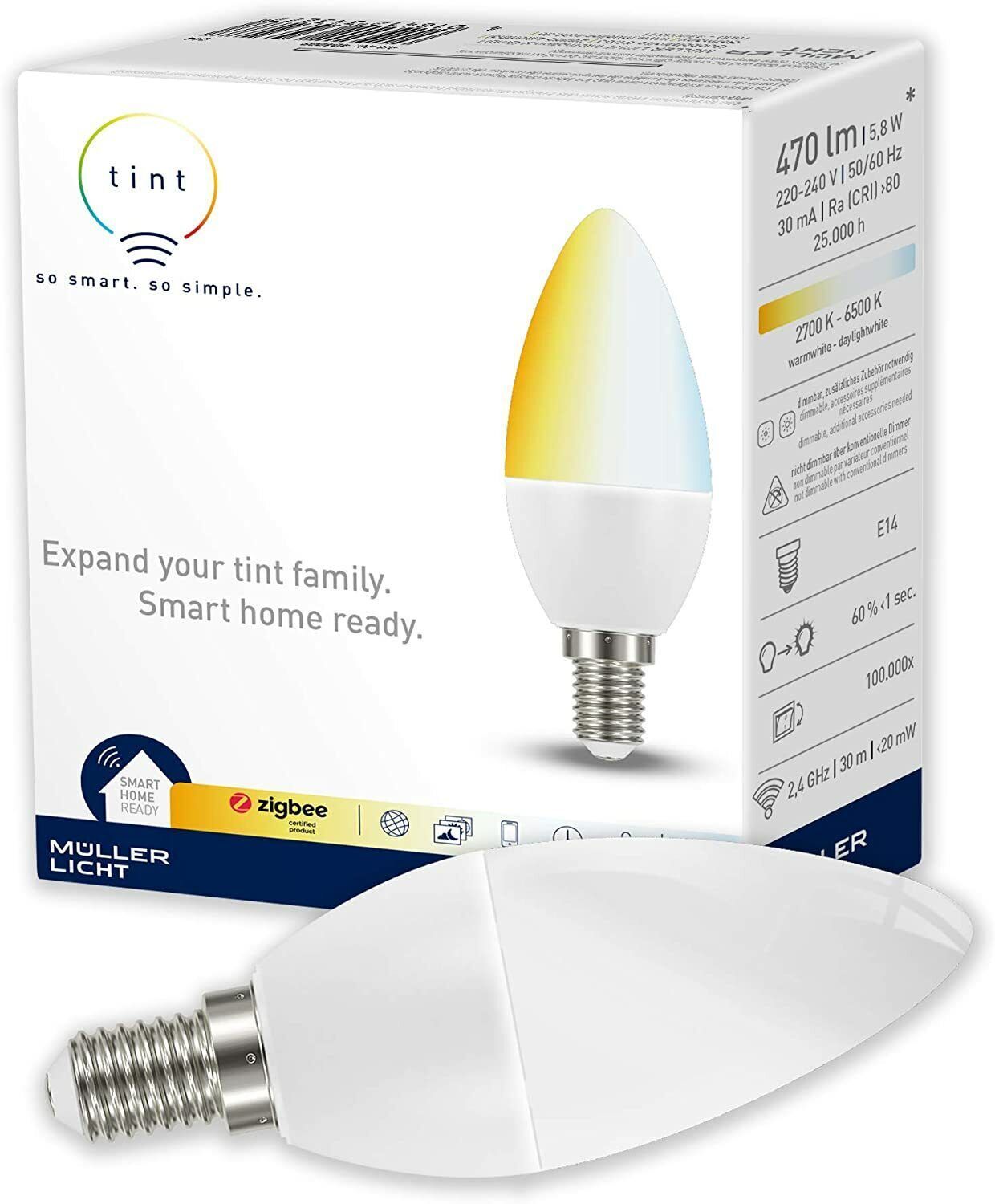 TINT MüllerLicht zigbee Smart+ LED Kerze tunable 5,8W E14 EEK: F (Spektrum A-G)