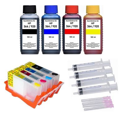 • Wiederbefüllbare Tintenpatronen kompatibel mit HP 364 + 400 ml Nachfülltinte