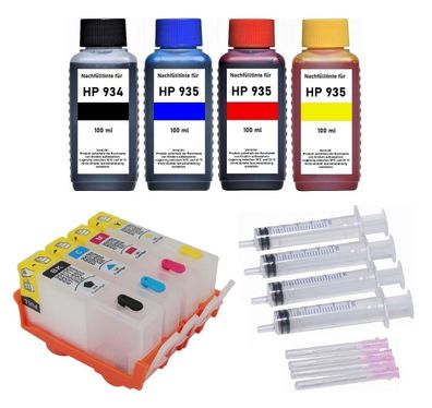 • Wiederbefüllbare Tintenpatronen kompatibel mit HP 934 & 935 + 400 ml Tinte