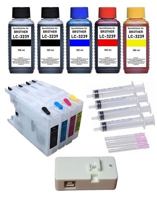 • Nachfüllbare Patronen kompatibel mit Brother LC-3239 + Chipresetter + 500ml Tinte