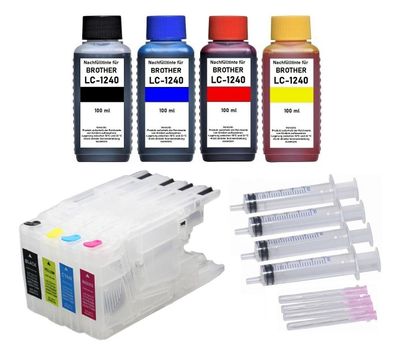 • 4 nachfüllbare Tintenpatronen kompatibel mit Brother LC-1280 + 400 ml Nachfülltinte