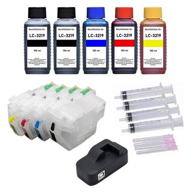 • Nachfüllbare Patronen kompatibel mit Brother LC-3219 + Chipresetter + 500 ml Tinte
