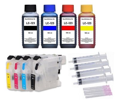 • Nachfüllbare Tintenpatronen kompatibel mit Brother LC-123 + 400 ml Nachfülltinte