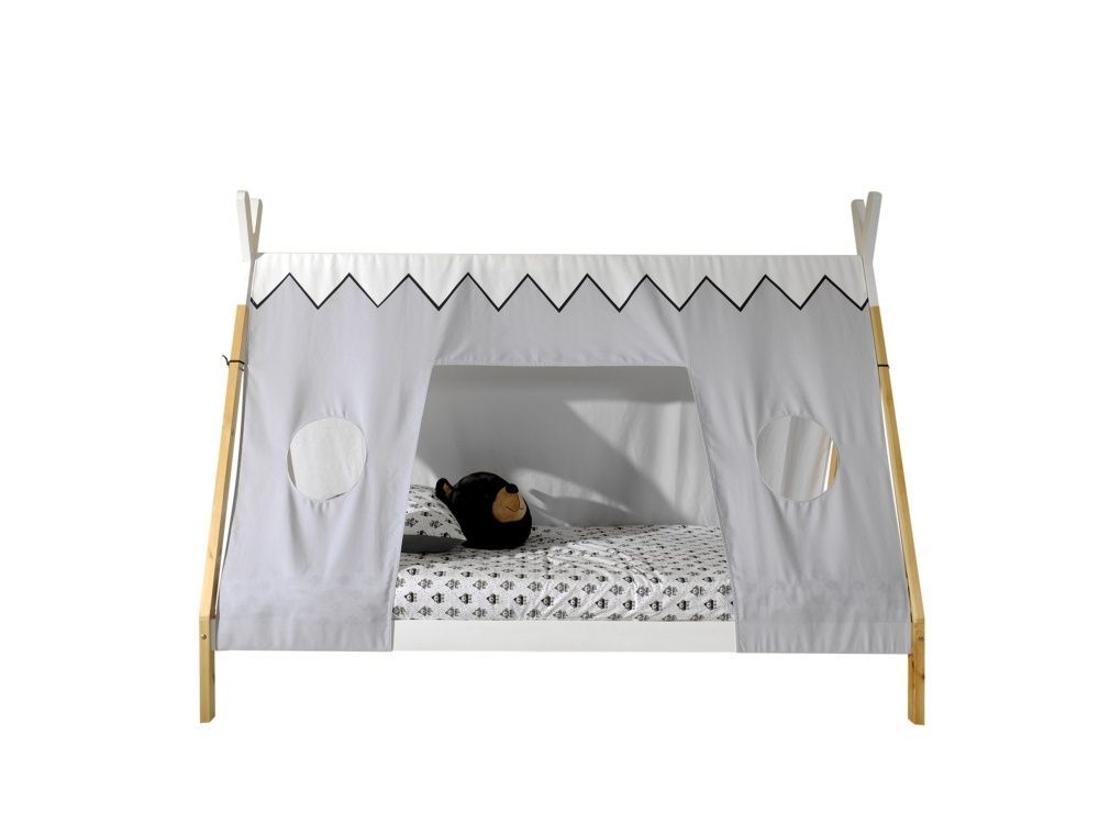 VIPACK Tipi Bett mit Textilzeltdach+Lattenrost- 90x200 Kinderbett Zeltbett -Weiß