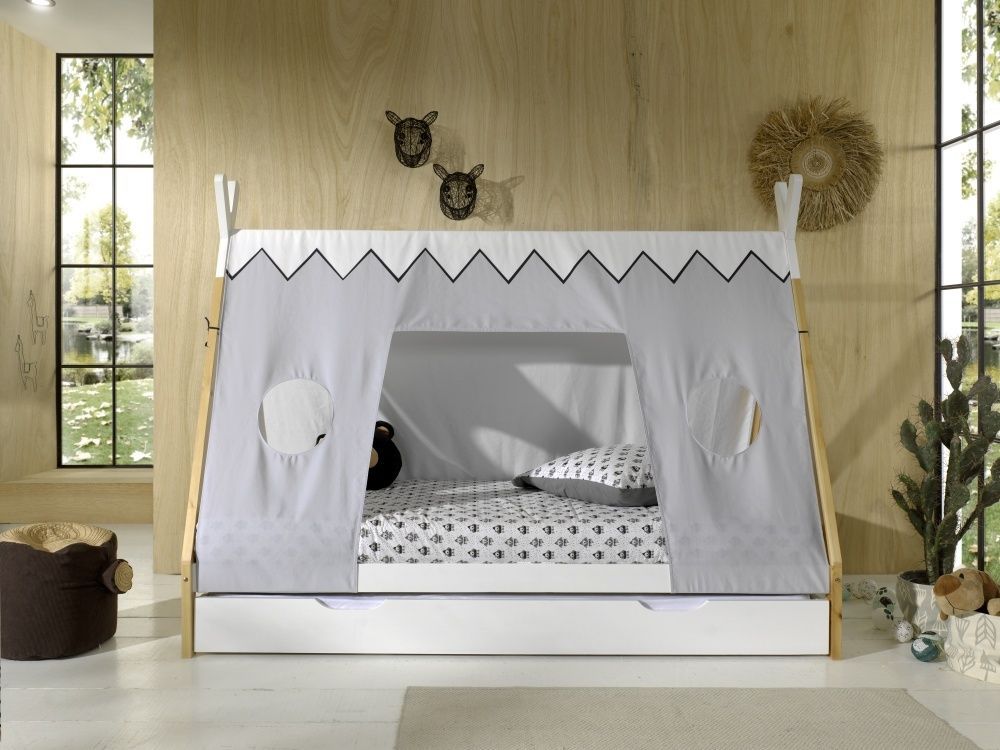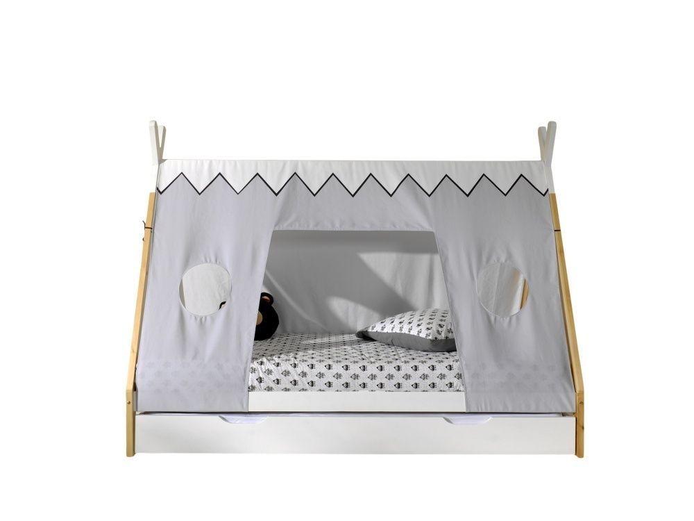 VIPACK Tipi Bett mit Textilzeltdach+Lattenrost+Bettschublade- 90x200 Kinderbett Zelt